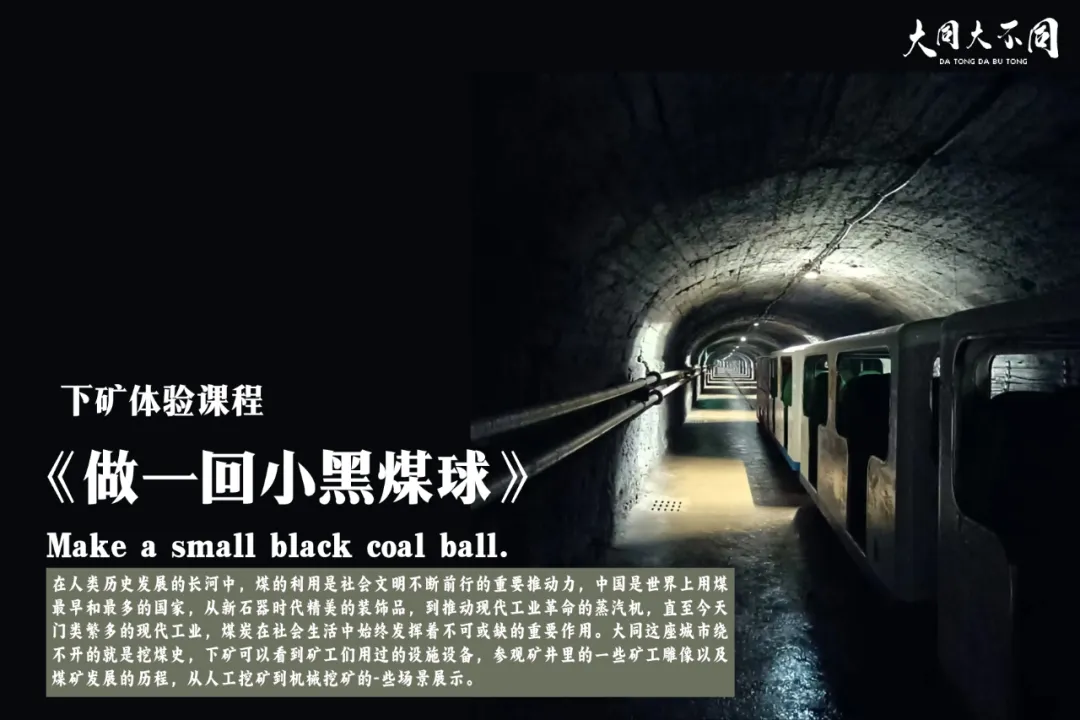 下午,我们将走进与云冈石窟一河之隔的晋华宫国家矿山公园,深入井下探秘,“小小矿工”在这片黑土地上,了解煤炭开采历程,感受大同这座“中国煤都”的另一面。