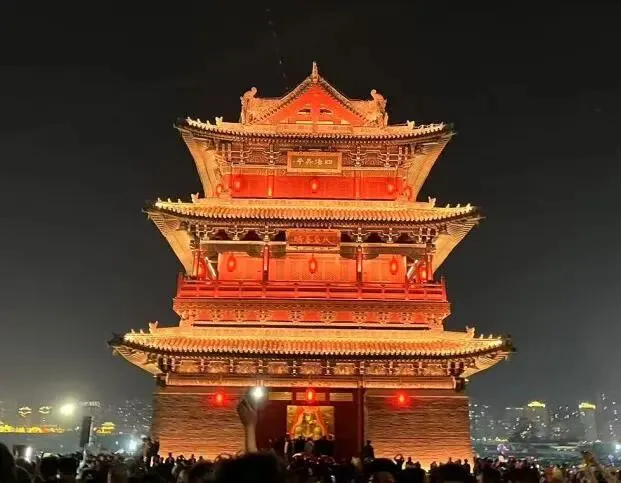 现代城市的灯火与古代城池的轮廓,在此刻完全融合,奇妙大同,古今同在。