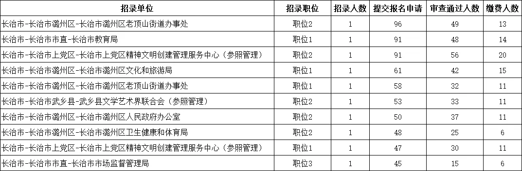 截至1月21日16:30,2026山西省考长治地区报名最激烈的岗位是长治市潞州区老顶山街道办事处,报录比最高的岗位是长治市潞州区老顶山街道办事处,报名人数96人。