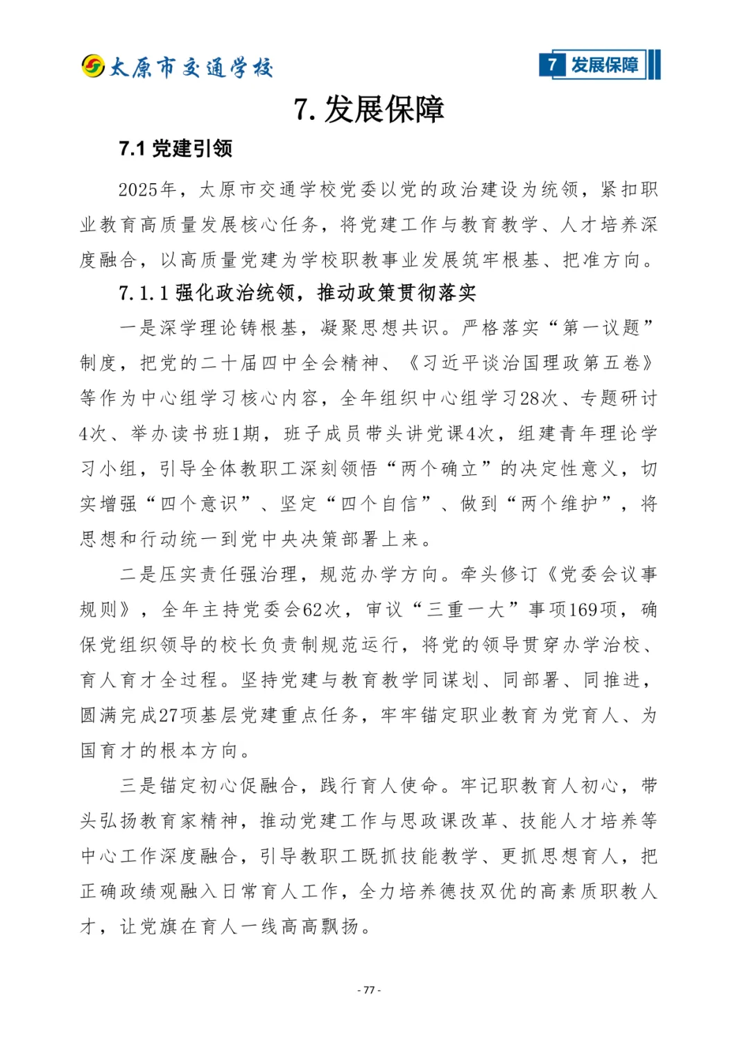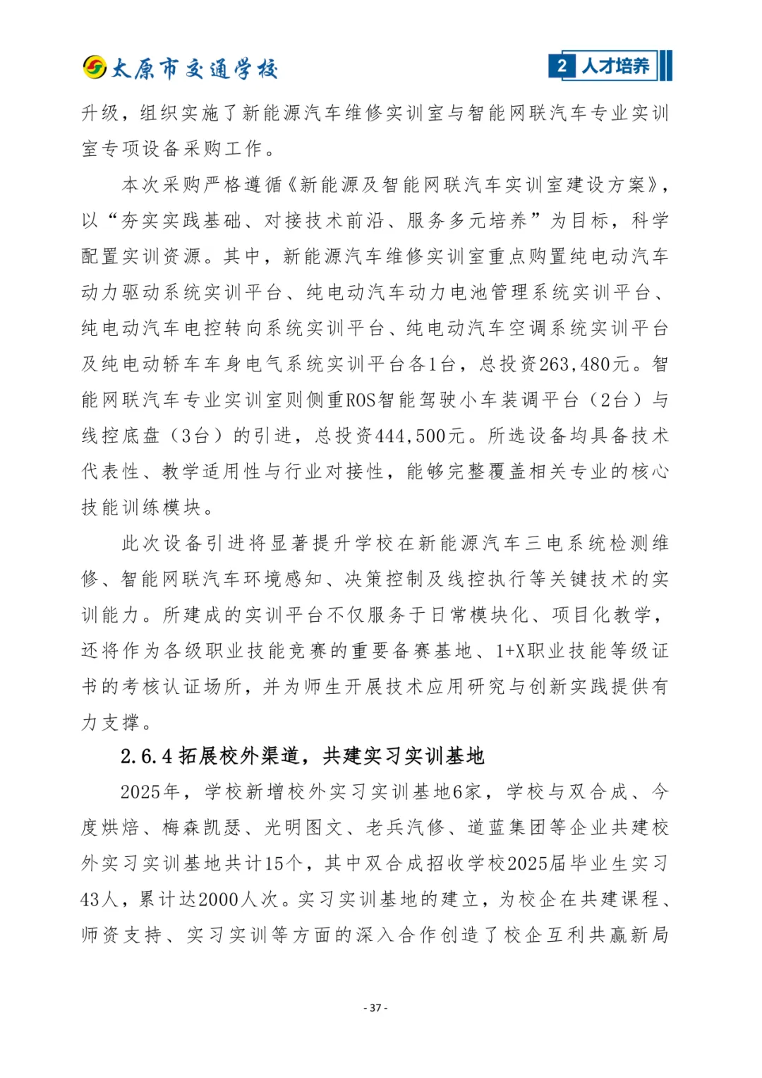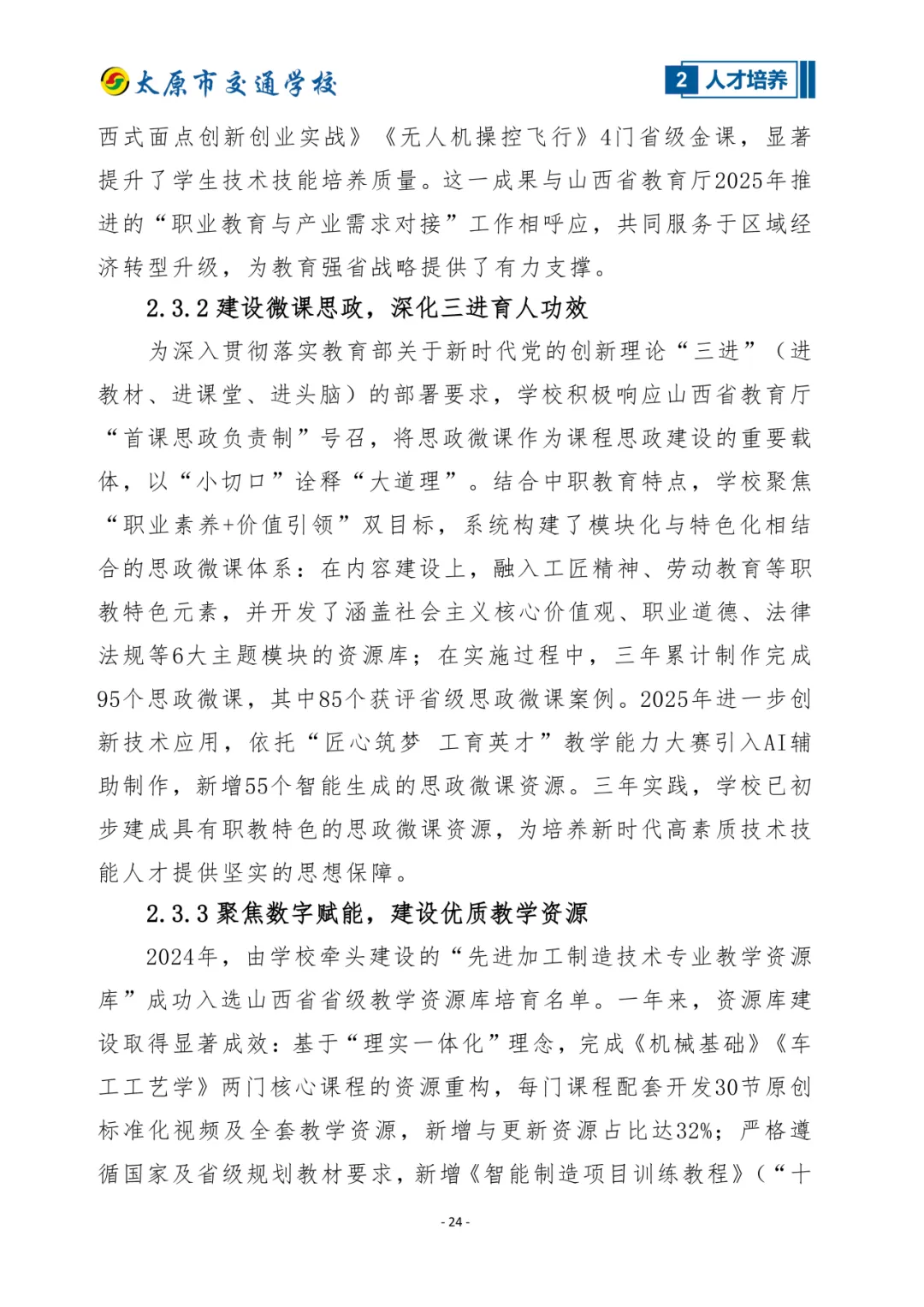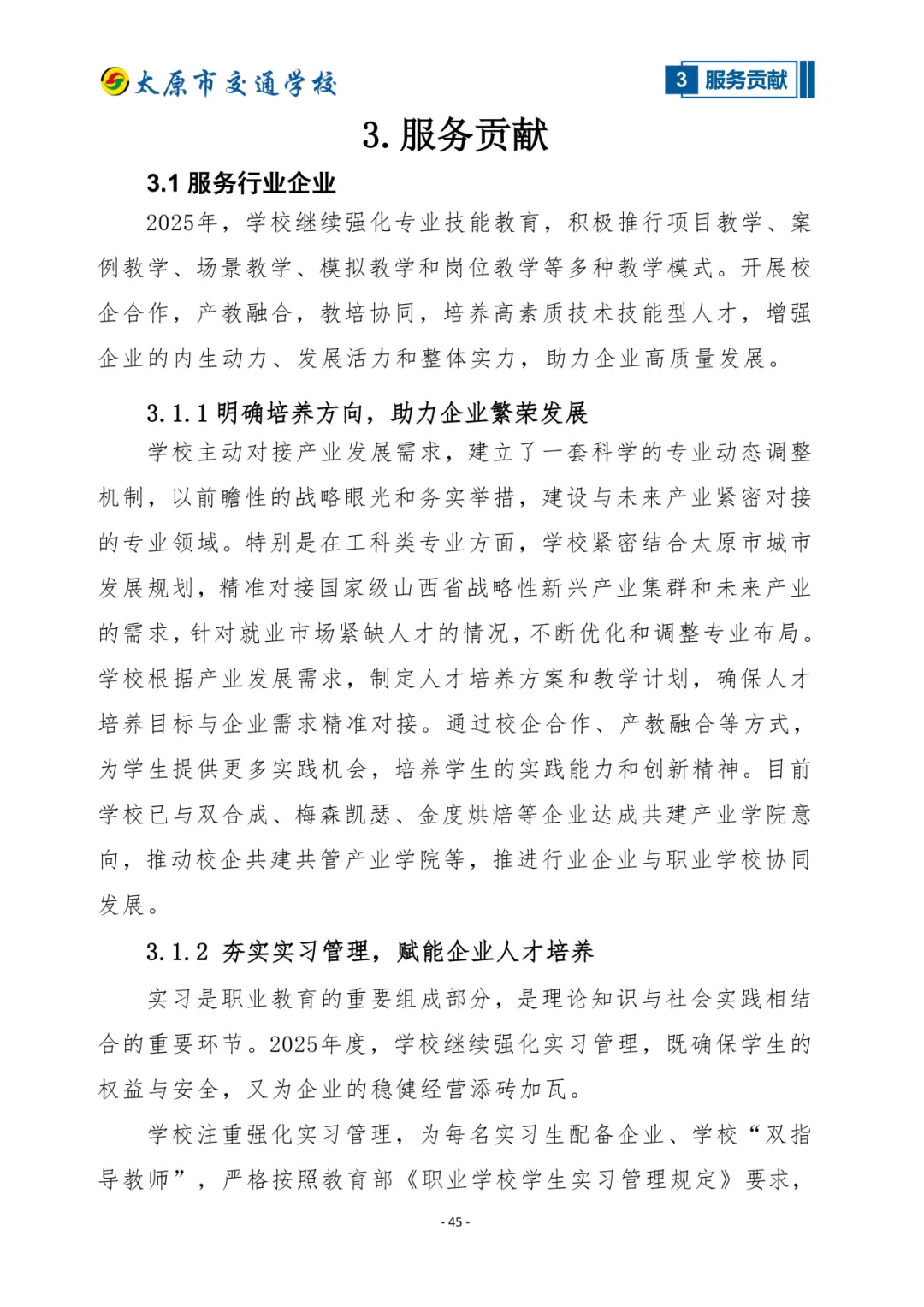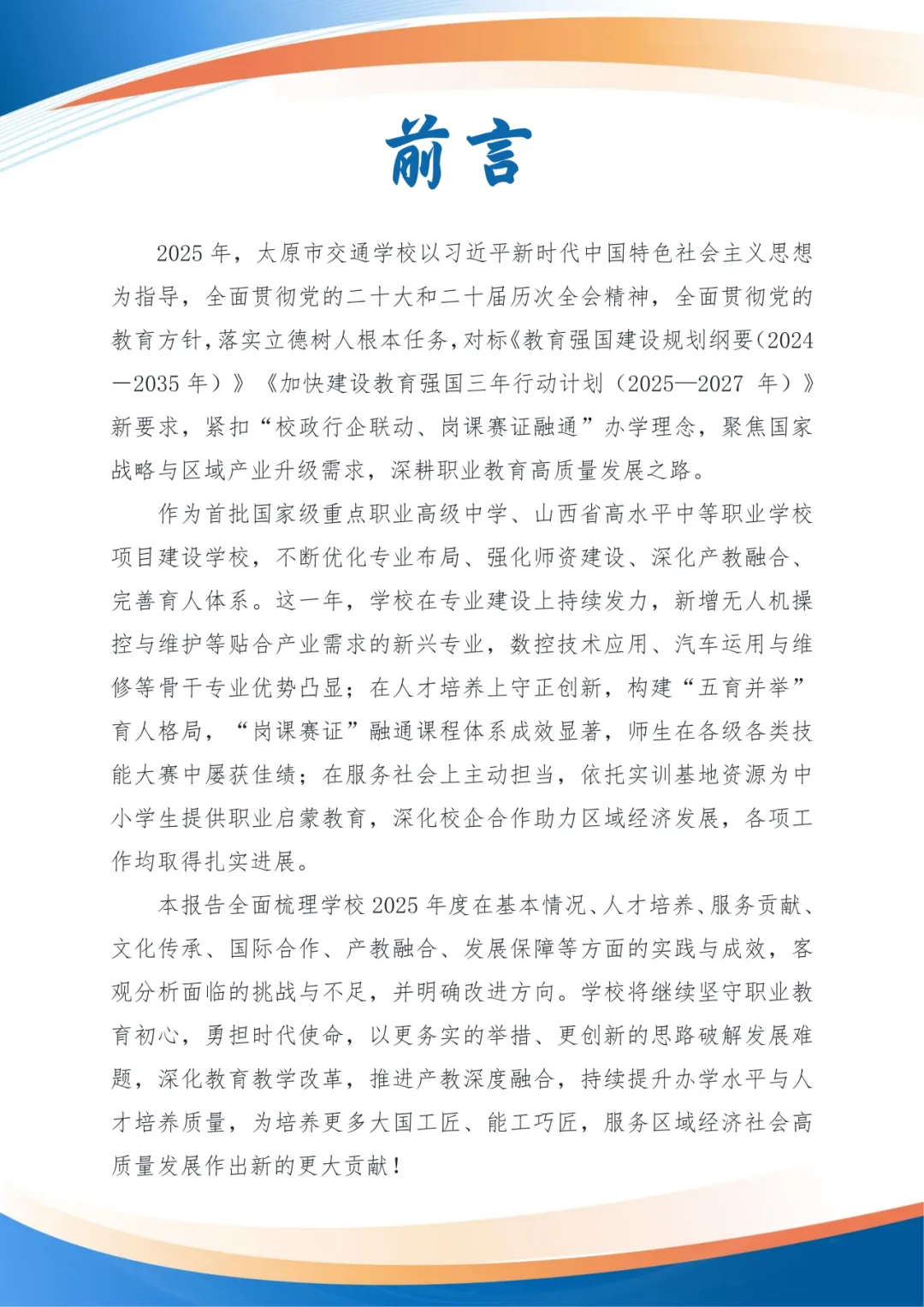 >太原市交通学校中等职业教育质量年度报告(2025 年度)