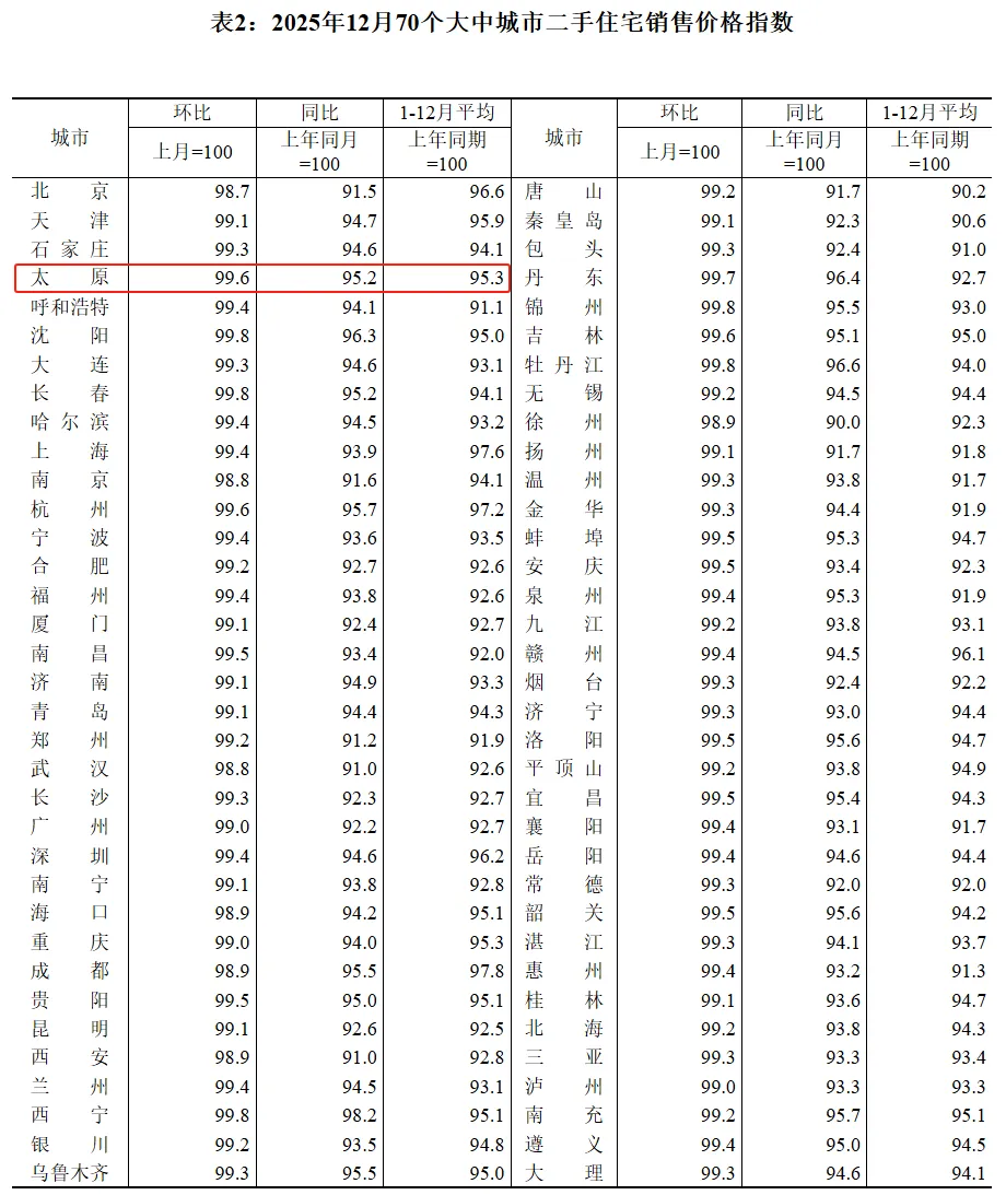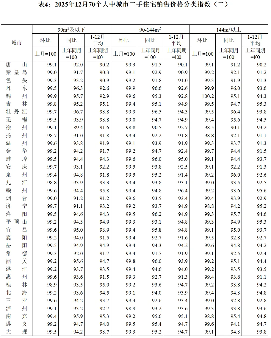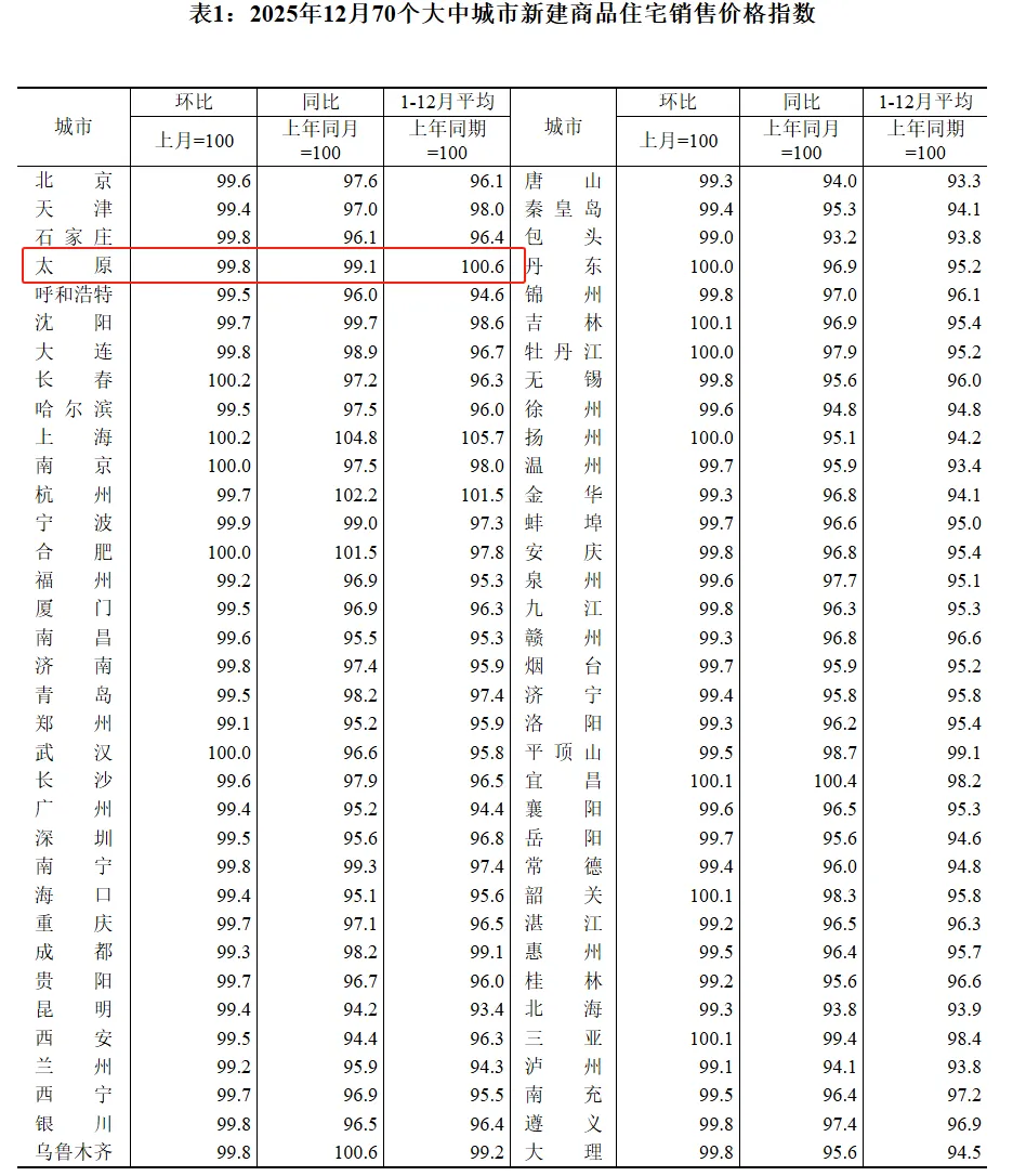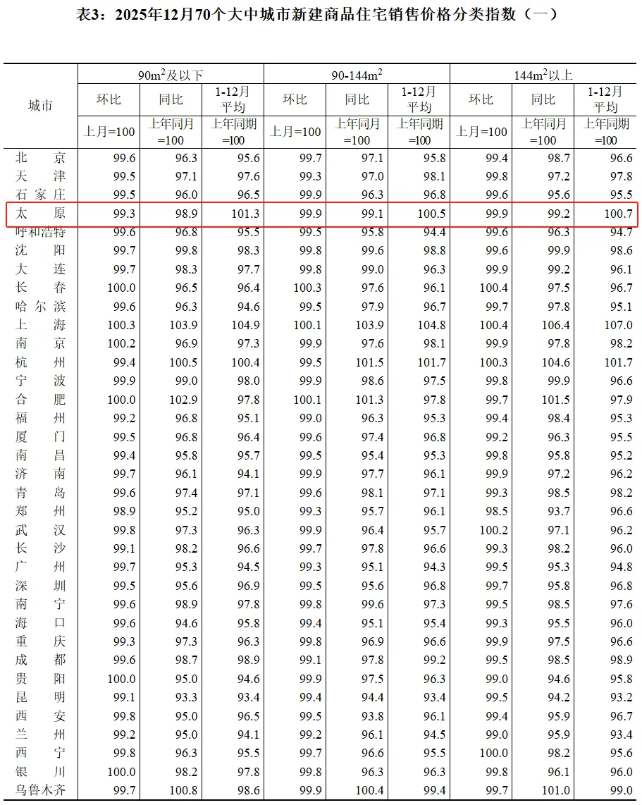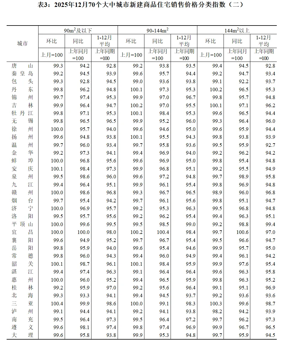 2025年12月份70个大中城市商品住宅销售价格变动情况