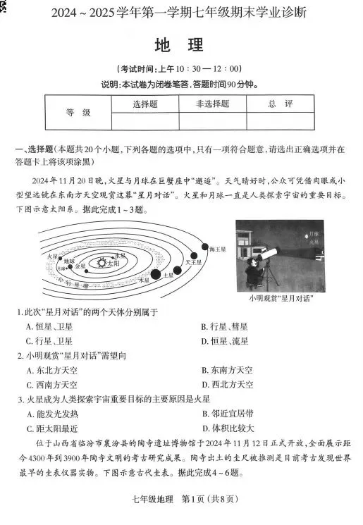 说明:聚落类型答城市也可得分。