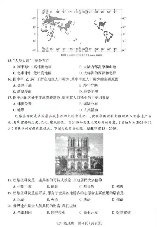 (1)聚落类型:城镇(1分)宗教:佛(1分)