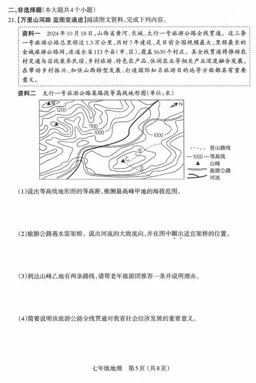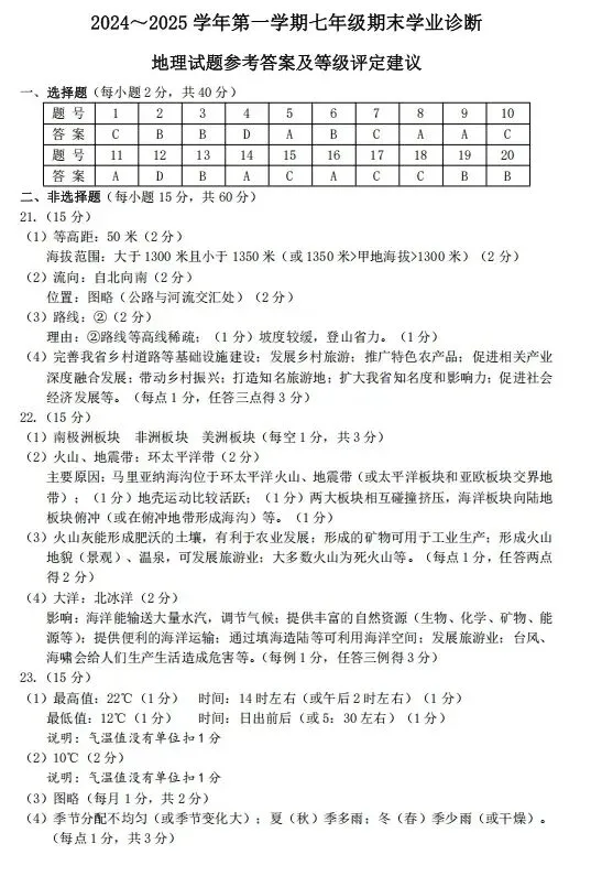 评分说明:主观试题仅供参考,言之有理可酌情给分。地理事物名称出现错别字不得分。