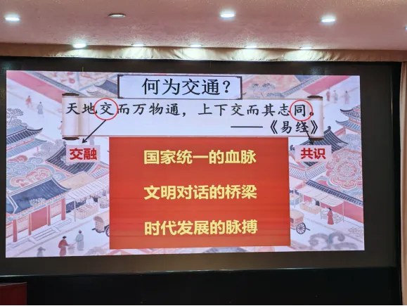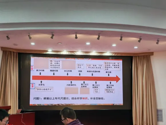 第二部分:由太原市第五中学校王宇腾老师执教跨学科主题学习课《历史上水陆交通的发展》。本课以《易经》中“交通”释义导入,引导学生认知交通是国家统一的血脉、文明对话的桥梁与时代发展的脉搏,进而从三大模块展开探究。