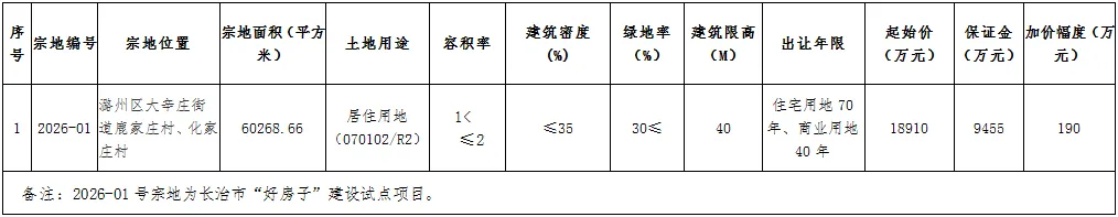 经长治市人民政府批准,长治市规划和自然资源局决定以网上拍卖方式出让以下1(幅)宗地的国有建设用地使用权,并指定长治市公共资源交易中心(长治市政府采购中心)组织实施。现将有关事项公告如下: