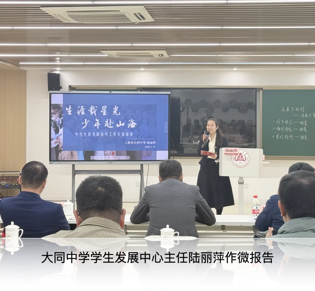 大同中学学生发展中心主任陆丽萍聚焦大同中学“为学生终身发展奠基”的理念,以生涯导航系列为核心,阐述了学校“课程筑基、导师领航、自主为要、多元联动”的四位一体生涯发展指导体系。