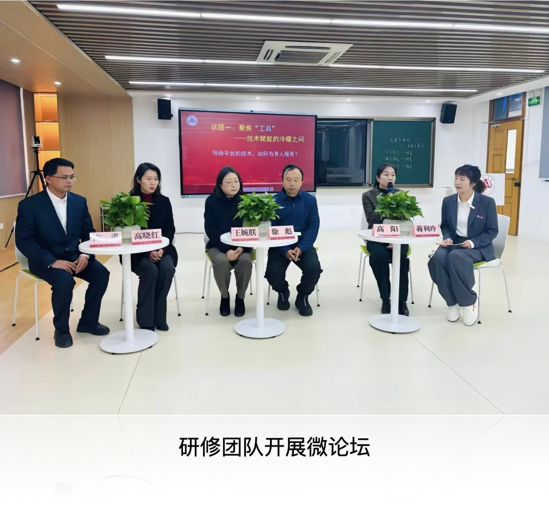 市“双名工程”攻关计划应华团队的徐彪、王婉朕,市“双名工程”攻关计划艾卫锋团队的高晓红、高勇,以及松江区教育学院的高阳等老师共同开展主题为“新时代全员导师制的‘精度’与‘温度’”的微论坛,论坛由蒋利玲老师主持。老师们围绕全员导师制的实施难点、创新举措、成效反思等关键问题展开深入探讨,为破解新时代育人难题提供了宝贵思路。