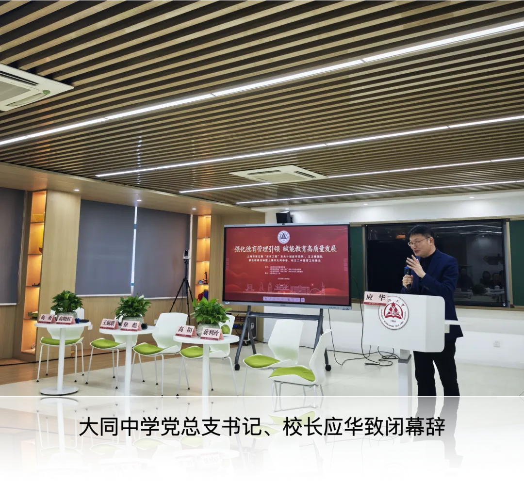 教育部校长培训中心熊万曦副教授,松江区教育学院党委书记陈赣等专家、领导出席。陈赣强调,德育工作要顺应时代发展变化,更要坚守育人定力,精准把握教育的本质与核心。大同中学党总支书记、校长应华,松江二中党委书记、校长艾卫锋在致辞中表示,希望攻关计划研修通过以校际交流为纽带的创新模式,碰撞教育智慧、深化德育内涵,共同推动新时代育人工作高质量发展。