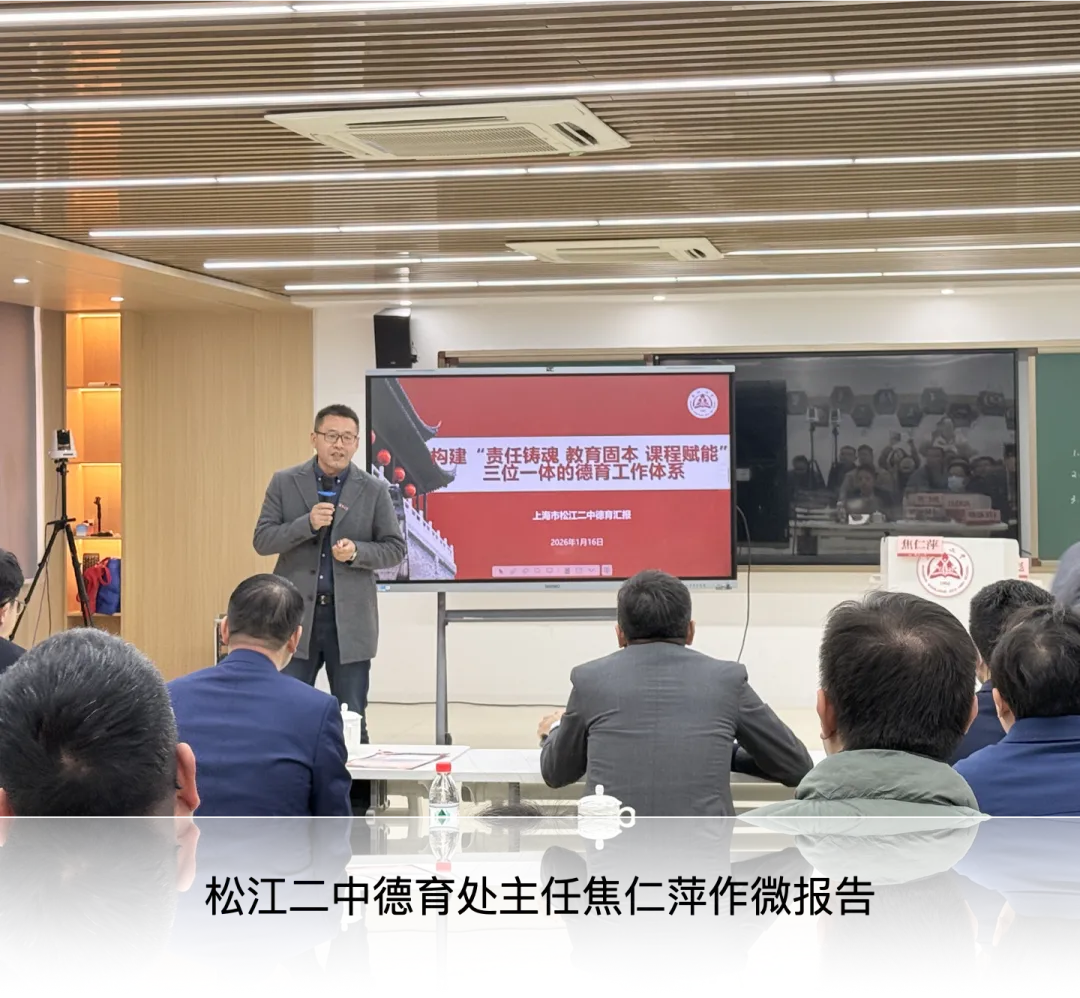 “艾卫锋强调松江二中始终坚守为党育人、为国育才的初心使命,期待以此次校际交流为纽带,碰撞教育智慧、深化德育内涵。“陈赣结合自身从教经历与教育研究思考指出,做好德育工作,既要顺应时代发展变化,更要坚守育人定力,精准把握教育的本质与核心。松江二中叶敏开设了“夜幕下的灯”主题班会课,以“责任教育”为核心,从小切口切入,以灯光喻理想,通过互动交流、情景感悟等形式,引导学生从对自我负责、对集体负责升华至对国家负责。