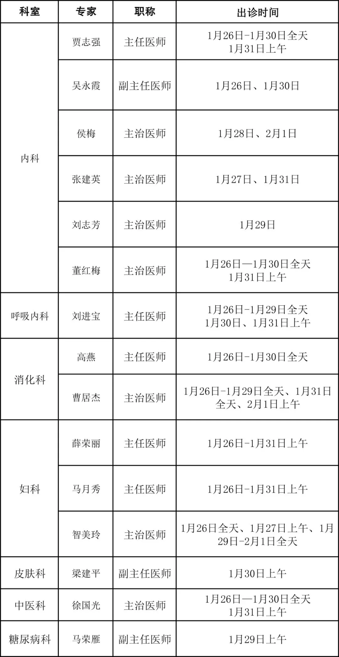 本院专家出诊时间