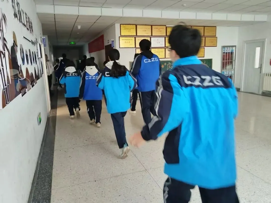哨声响后,基础教学部全体师生迅速就地进行安全避险,“警报”解除后,大家快速撤离教室,沿安全疏散指示标志快速向安全地带转移。