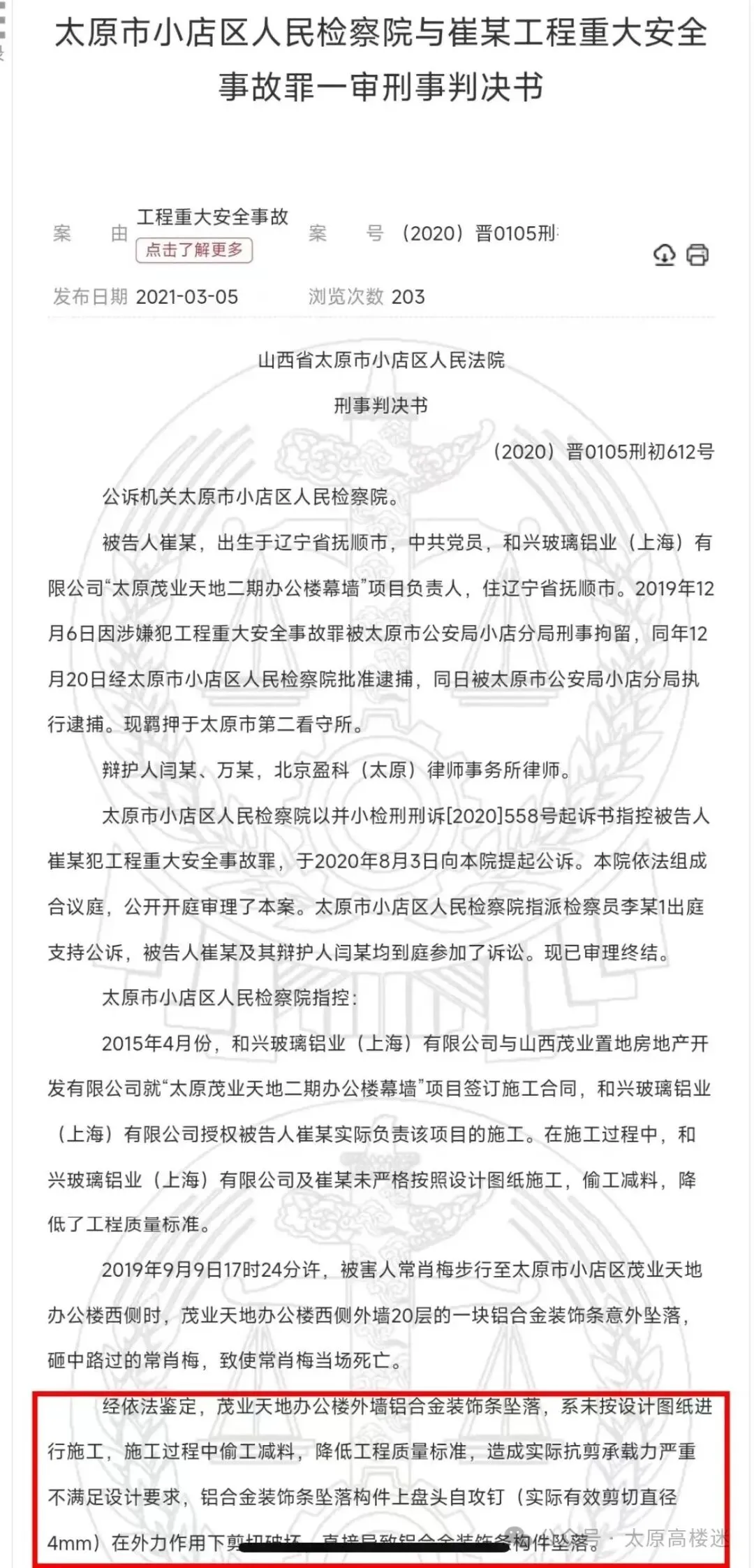 小店区人民法院的刑事判决书明确指出: