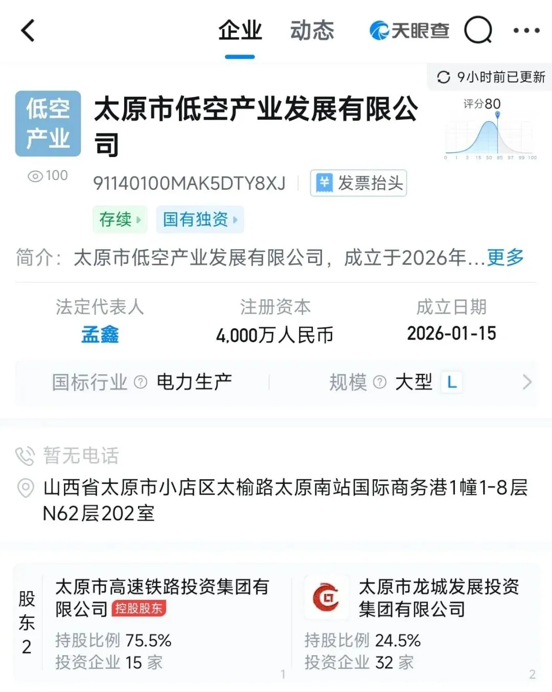 该公司由太原市属国有资本全资设立,股权结构显示,太原市高速铁路投资集团有限公司持股75.5%,太原市龙城发展投资集团有限公司持股24.5%。这两家企业均为太原市财政局全资控股的市属重点国企。