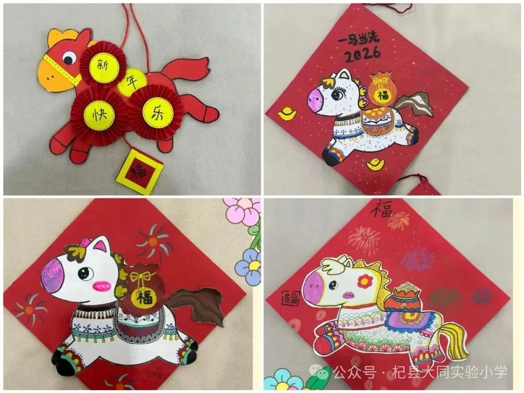 “笔墨丹青绘山河,妙手童心创未来”本次美术期末测评设置主题绘画、剪纸、黏土等多元创作任务,融入吉祥纹样、生肖元素与新年祝福。测评现场,孩子们以笔为媒,用色彩绘就梦想,一幅幅作品五彩斑斓、满含奇思妙想,诠释着“所见皆可入画,所想皆可下笔”的纯粹美好。