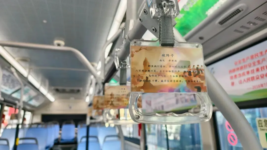 “诗韵车厢”是我们服务市民、特别是青少年群体的创新举措,也是公交服务从“运输”向“运输+文化”转型的探索。希望这些流动的诗行能为城市增添更多文化温度。”我们将不断更新车厢诗词内容,让“诗韵车厢”成为一个动态生长、持续丰富的文化载体。
