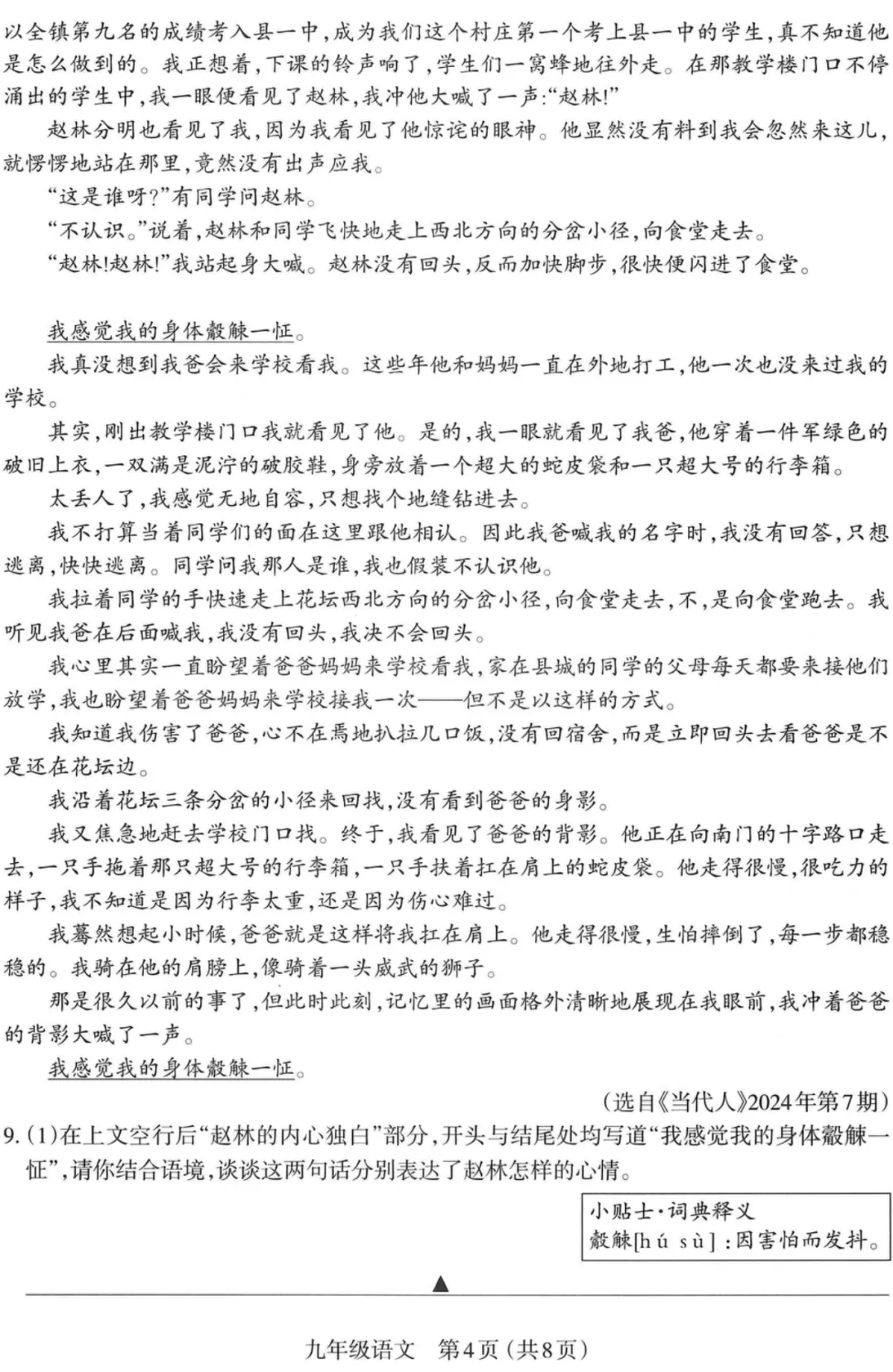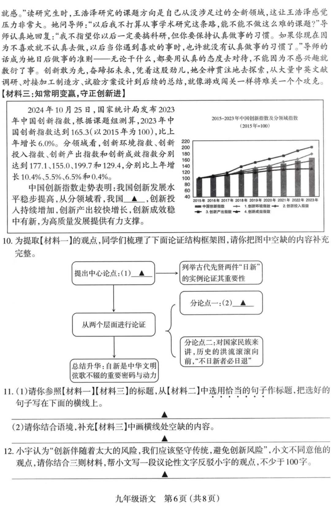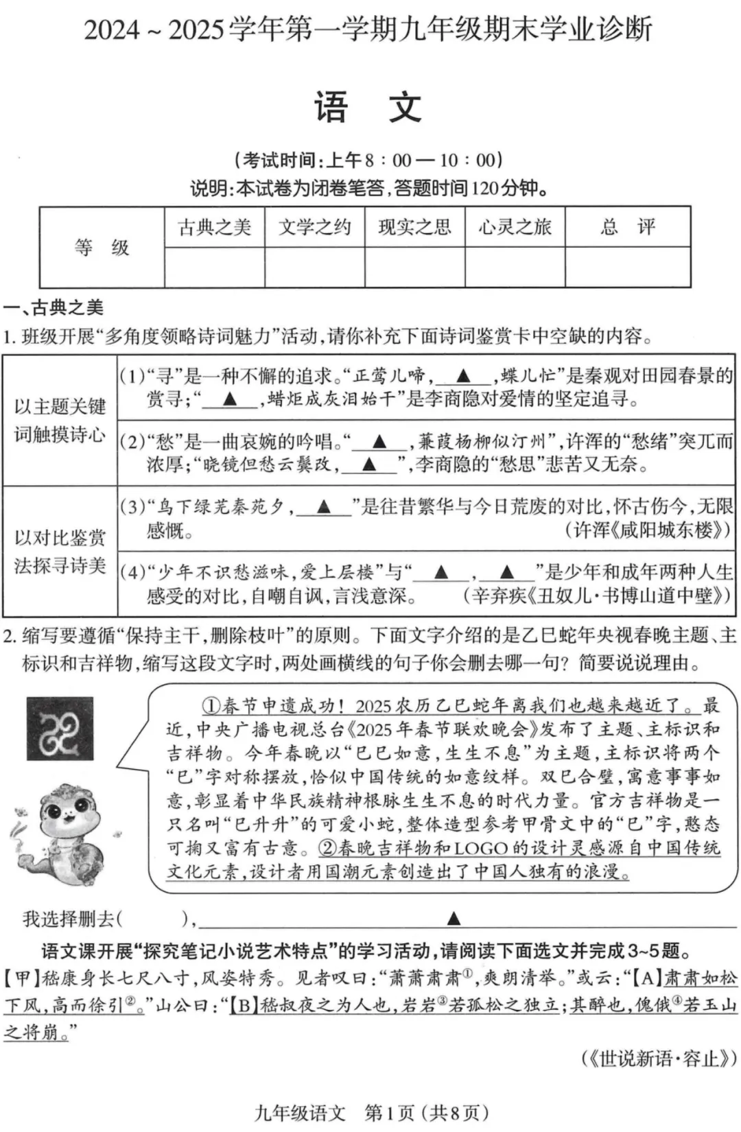 太原市 九年级 2024-2025 第一学期 期末【语文】试卷+答案