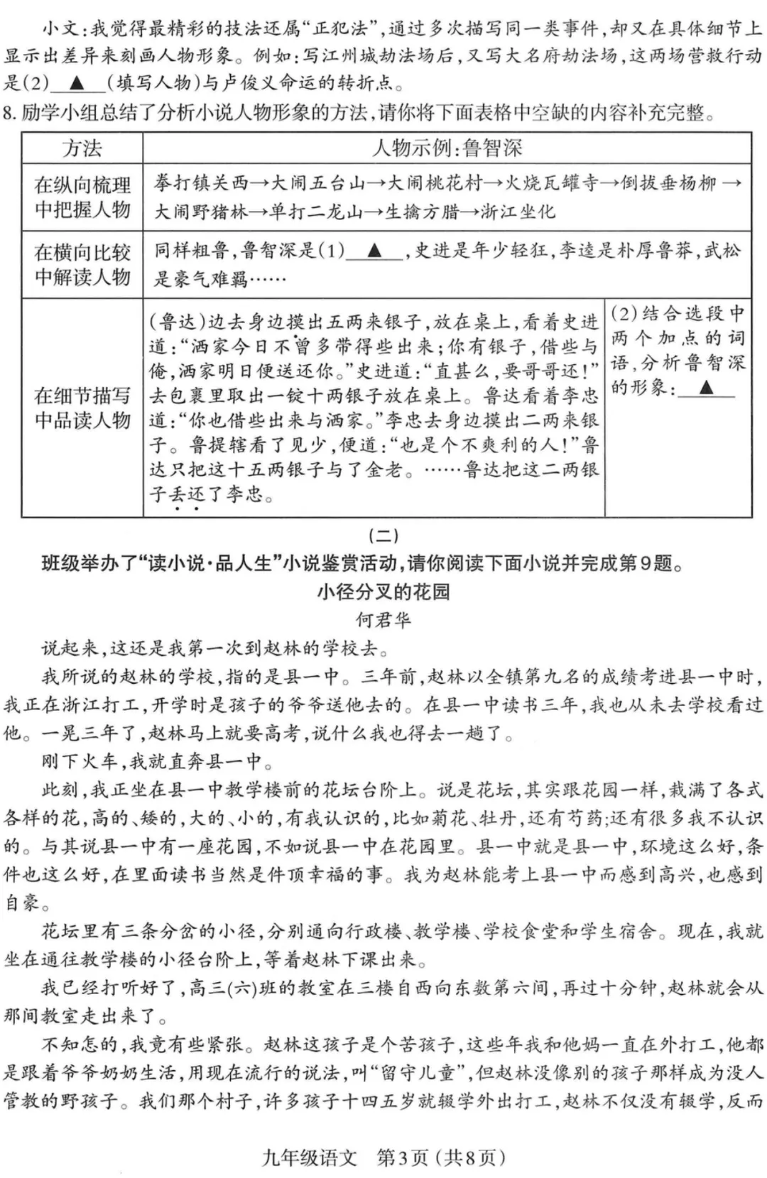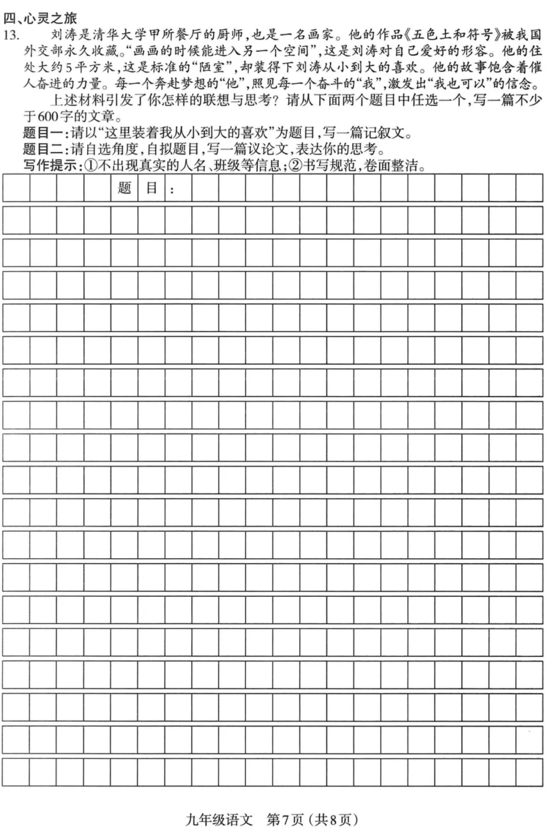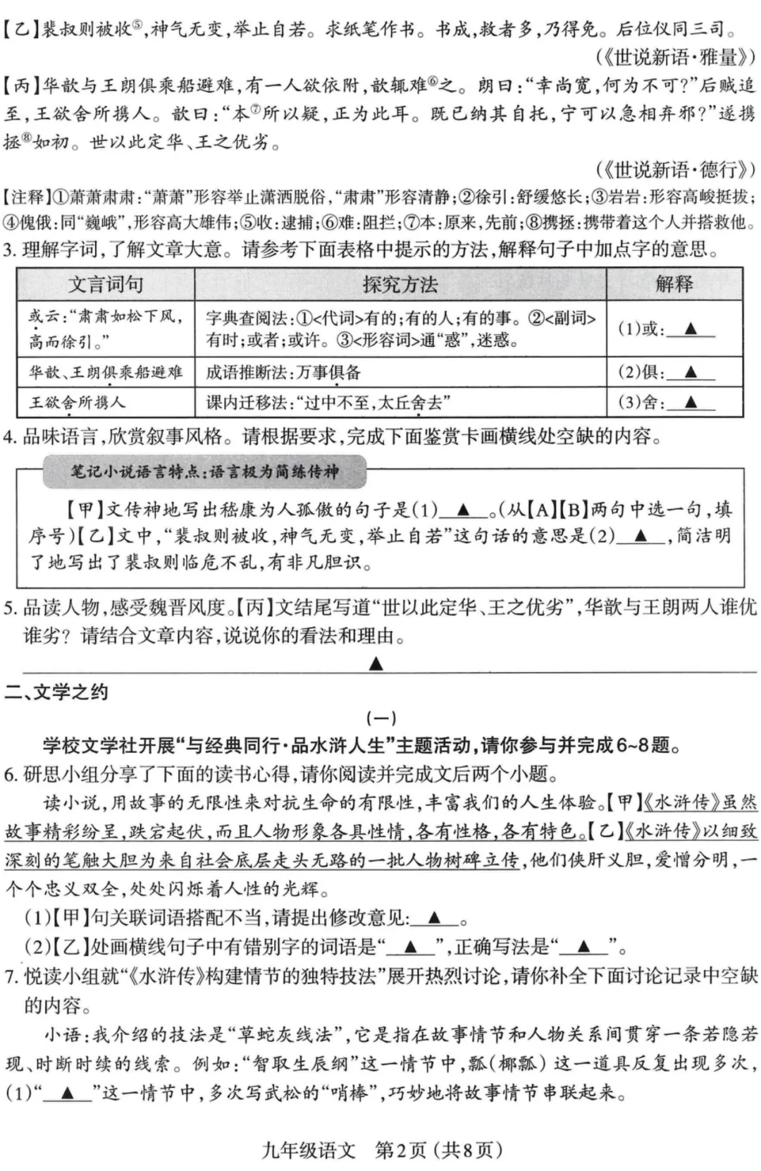太原市 九年级 2024-2025 第一学期 期末【语文】试卷+答案