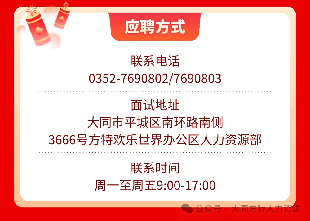 >大同方特2026年正式工招聘