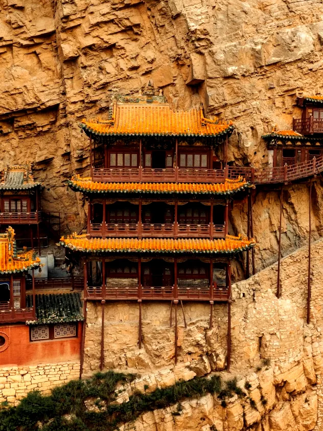 云冈石窟的露天大佛眉眼慈悲,华严寺的辽代彩塑庄严灵动,悬空寺挂在悬崖峭壁上,走上去步步惊心却忍不住惊叹古人智慧。