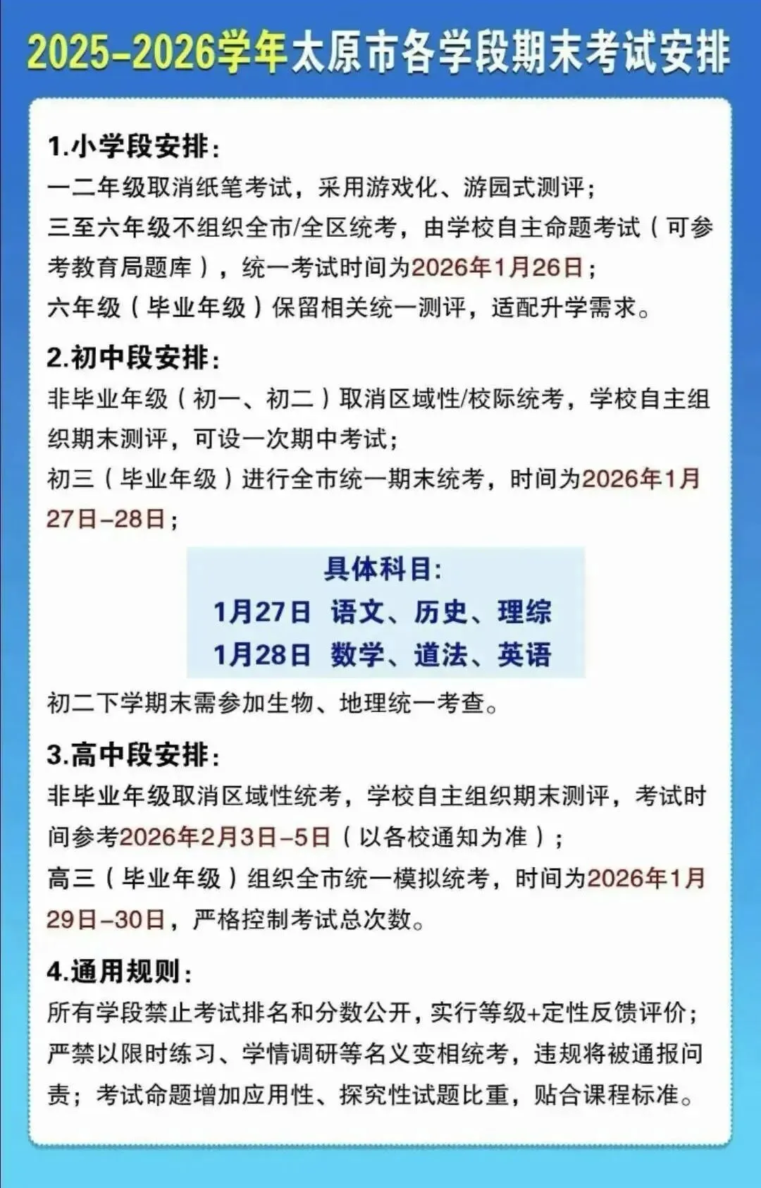 太原教育重磅调整!2025-2026 学年期末取消统考!“学业诊断” 模式开启,考试日程同步公布