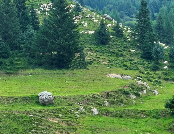 拍照别只盯着大景,试试拍局部。下午四五点,光线变软的时候,去拍草甸上的牛羊,或者老乡晒在院子里的红芸豆。那种色彩的饱和度,不用滤镜都很高级。最佳季节是盛夏和初秋,夏天避暑,秋天看林海染金,都是极好的时候。