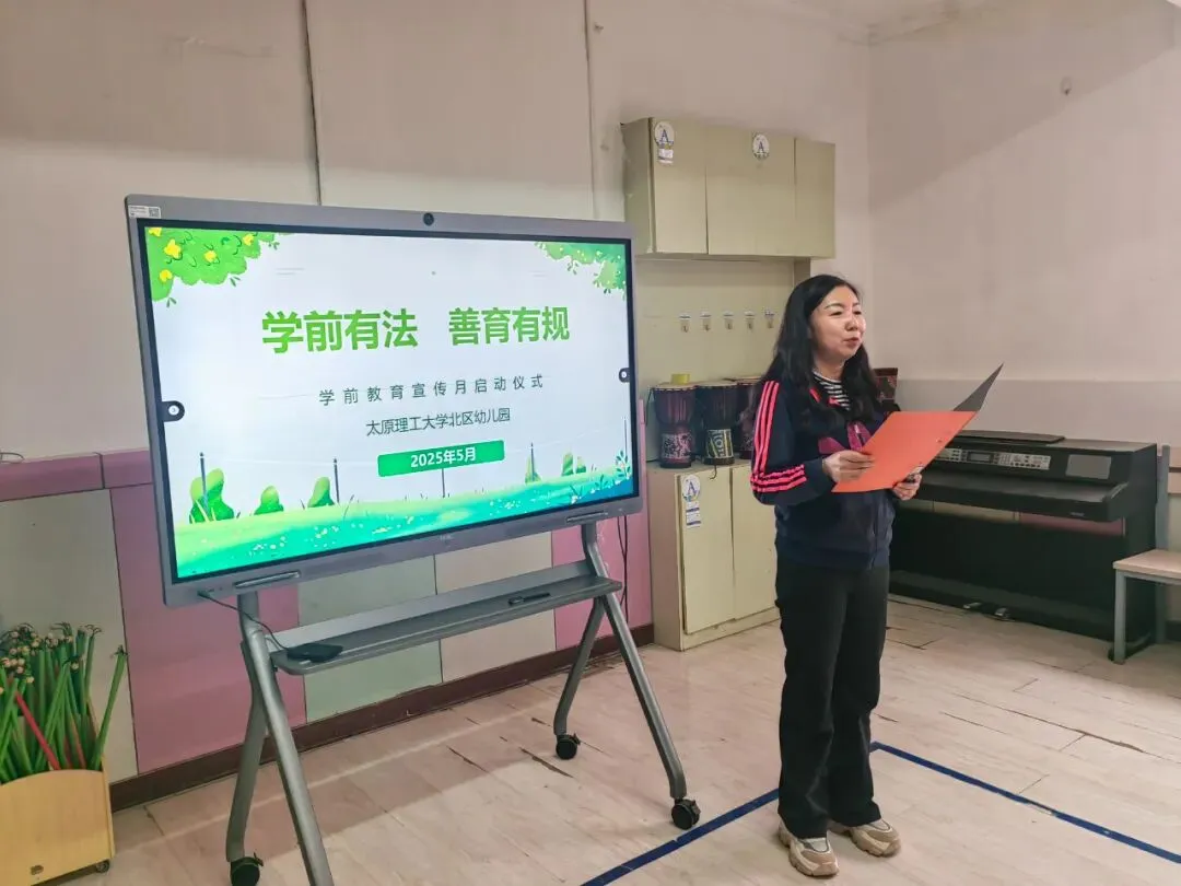 为深入学习贯彻落实《中华人民共和国学前教育法》,提升教师依法执教的责任和专业素养,切实加强幼儿园师资队伍建设,真正做到学法、懂法、用法,保障儿童权益,2025年5月23日,太原理工大学北区幼儿园组织以“学前有法·善育有规”为主题的学前教育宣传月启动仪式,深入宣传《中华人民共和国学前教育法》的主要内容,促进法治建设与学前教育发展的深度融合。