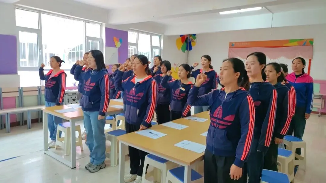 全体教职工庄严宣誓。共同承诺:遵守《学前教育法》,恪守教育法规,为孩子们营造健康、快乐的成长环境;精进专业能力,创新教育方法,为学前教育高质量发展贡献力量。