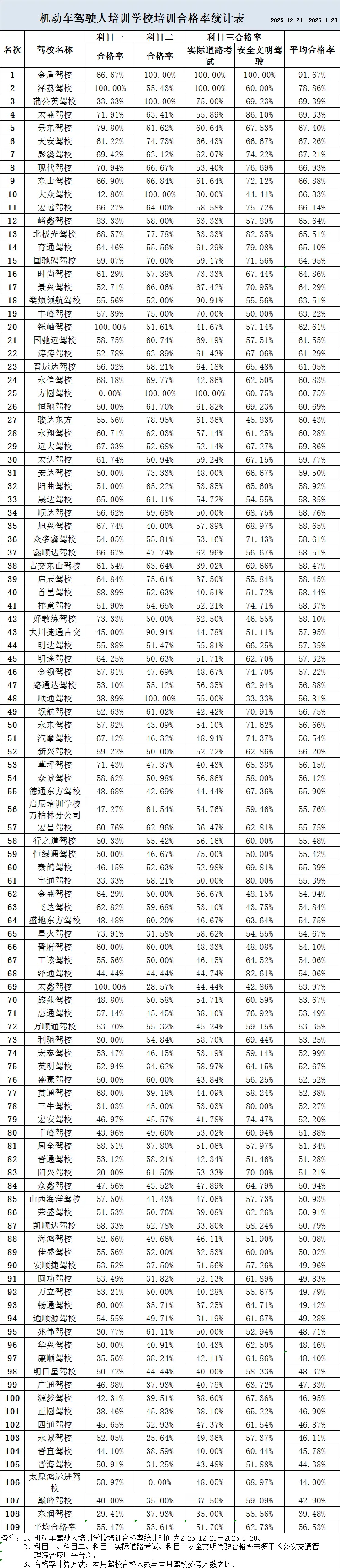 机动车驾驶人培训学校培训合格率