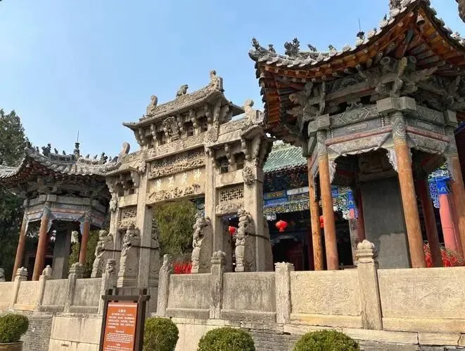 关帝庙在解州,规模大,砖木件头十足,门口石狮子憨,屋里碑刻多,关公的故事小孩都爱听,带着走一圈,动静都有。