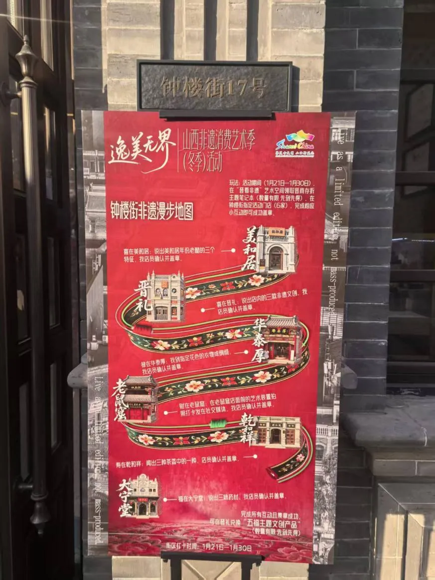 据悉,此次盖章打卡活动时间为1月21日至1月30日。而整个山西非遗消费艺术季(冬季)的精彩将一直延续到3月22日。在此期间,主办方还将推出“非遗时代新青年培养计划”和“非遗主理人招募计划”,为传统文化的当代传承注入更多青春创意。
