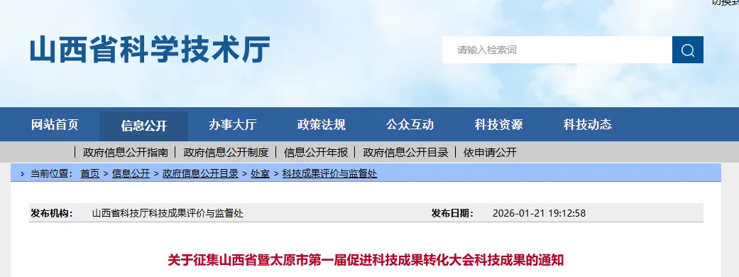 为加速科技成果从实验室走向生产线,助力山西能源转型与产业升级,山西省暨太原市第一届促进科技成果转化大会即将在太原举办。日前,省、市科技部门联合发布成果征集通知,面向全省高校、科研院所及相关单位,广泛征集具身智能、新能源、生物医药等领域的优质科技成果,为产学研用深度融合搭建高效对接平台。
