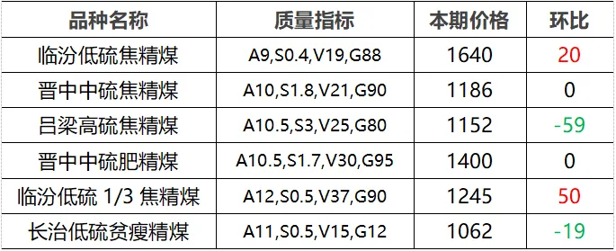 价格行情:炼焦煤市场分化调整运行,产地煤价小幅涨跌。省内长治地区主要煤企再度上调瘦煤、贫瘦煤长协车板价格30元/吨;坑口销售价格涨势收敛、部分回调,临汾地区主焦煤及1/3焦煤市场价格补涨20-50元/吨,吕梁地区主焦煤、长治地区贫瘦煤市场价格下跌19-59元/吨不等。