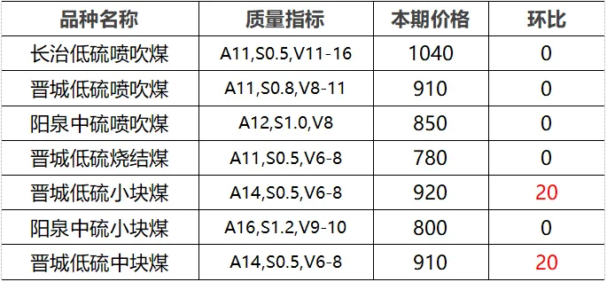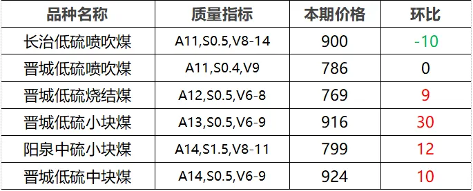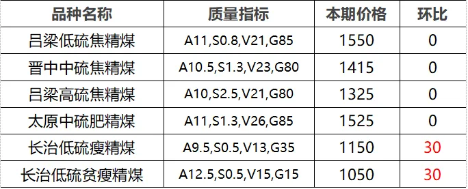 4.市场价格主要为中国太原煤炭交易网自动成交交易价格,个别为企业报价(坑口含税)。