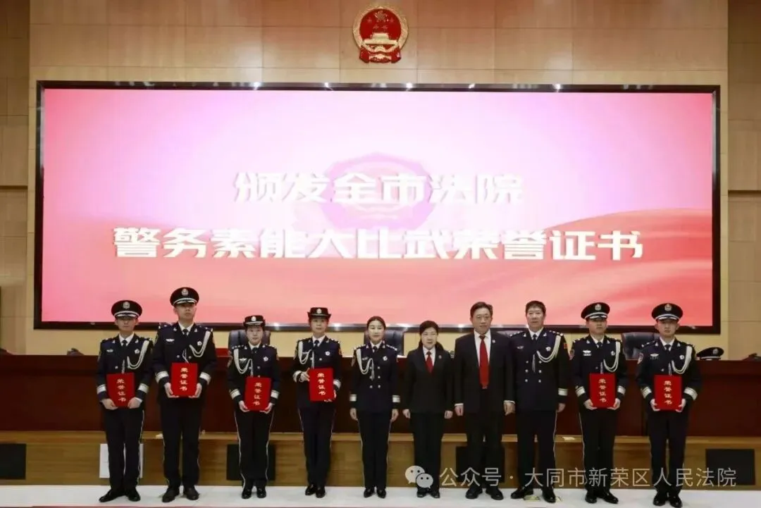 近日,大同市中级人民法院主办的全市法院司法警察警务素能大比武圆满收官。新荣区人民法院司法警察大队刘衍同志凭借过硬的专业素养、精湛的警务技能,在竞赛中脱颖而出,荣获第三名的优异成绩。