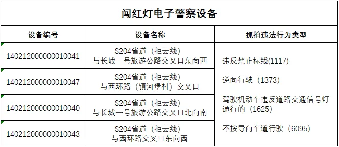 为了进一步规范道路交通秩序,有效遏制道路交通事故的发生,减少道路交通违法行为,净化道路交通环境,根据《中华人民共和国道路交通安全法》及其实施条例以及公安部《道路交通安全违法行为处理程序规定》等法律法规有关规定,并结合道路实际状况,大同市公安局交通管理支队现决定启用4处交通违法电子警察抓拍设备,将对机动车闯红灯、压线、不按导向车道行驶、逆行等违法行为进行抓拍取证并依法实施行政处罚。