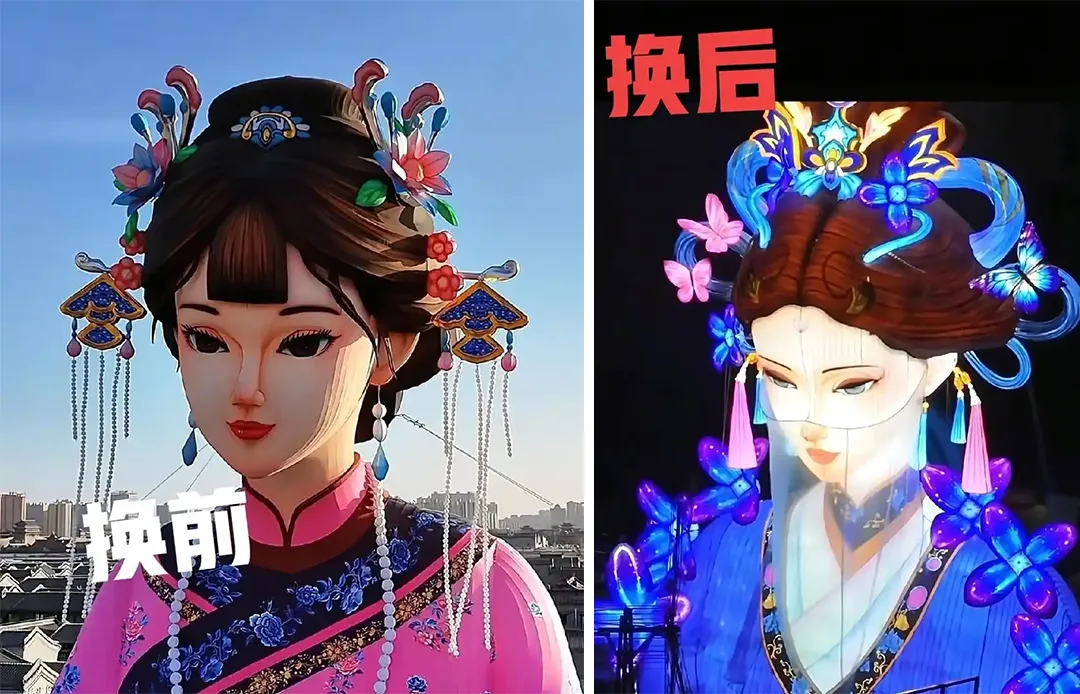 大同古城墙古装美女雕像火了,从纸扎风换妖艳风,大同文旅听劝的行事风格和雷厉风行的效率广受赞誉。不过,讲真,你真觉得换妆后的雕塑正常、美丽吗?同样,陕西华清池的贵妃雕塑最近也受到了质疑,贵妃出浴雕像上半身裸露被质疑不雅观。其实这类的雕塑在各种公园、学校并不少见,可能人们都忘记初见它们时的感受了,反正现在司空见惯,也不觉得奇怪了。大同风格的古装美女雕像最近几年广受欢迎,还记得济南大明湖畔的夏雨荷雕像吗?是不是画风不能说相似,只能说一模一样啊?窃以为这类画风并不搭配古色古香的古建,不知为何,大家都选此画风来搭配。尖下巴、大眼睛、大头发包加上花花绿绿的满头珠翠,是不是很眼熟?跟着电视剧的审美走的!这样真的好看吗?曾几何时,古典美是圆润饱满,大方恬静吧,华清池的贵妃虽然朴实无华,但整体的审美还是在的。古城搭上艳丽古装美女,怎么看都不伦不类,这是时尚吗?有点搞不懂现在的审美了!