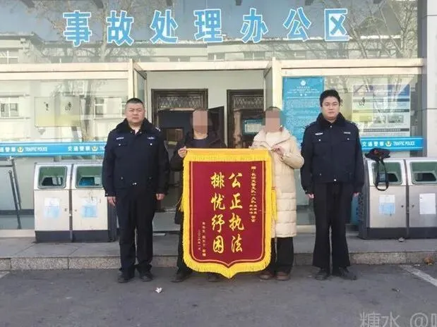 为表谢意,朱先生特意定制锦旗,送到民警手中:“民警同志不偏不倚,耐心讲法规解纠纷,这样的执法让我们心服口服!”