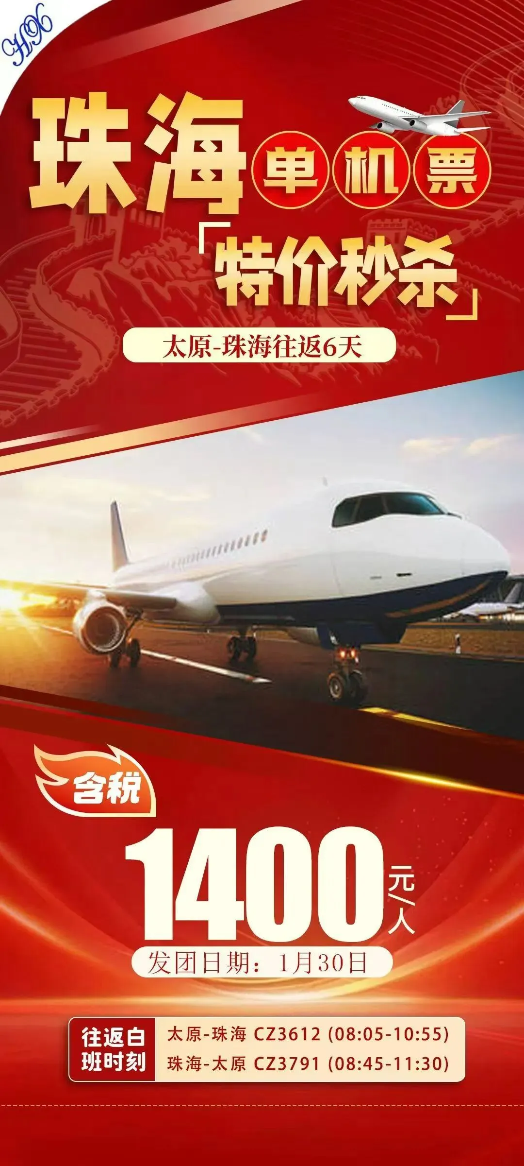 🏝️太原⇆广东特价机票