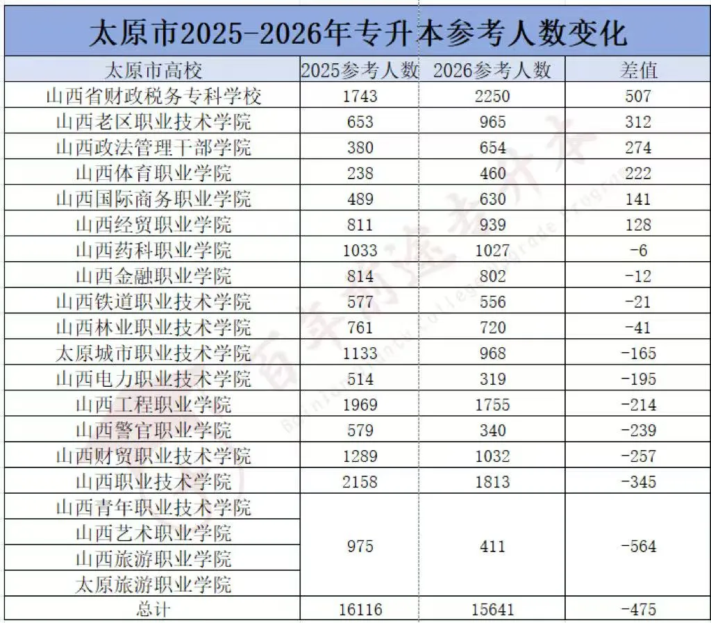 专升本考试人数竟然下降了?近日,太原市公布了2026年专升本体检时间安排,经过统计,2026年太原市参加体检的学生一共有15641人,相较于2025年减少了475人。
