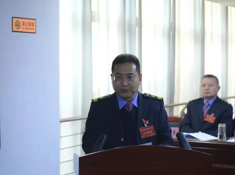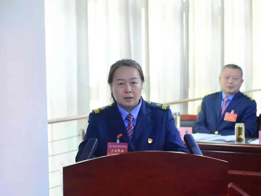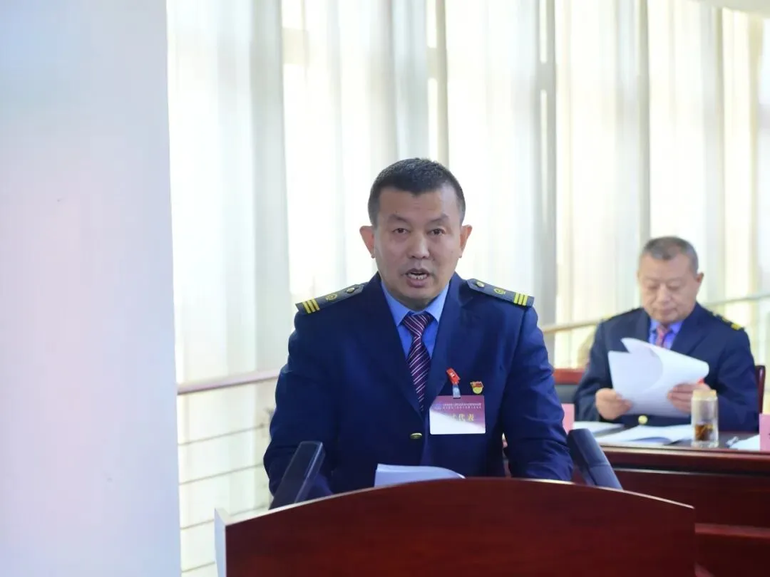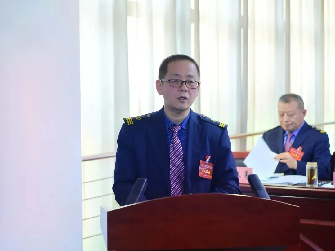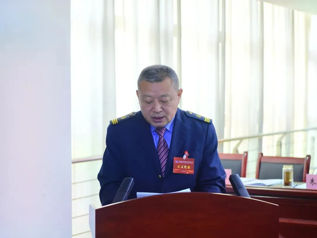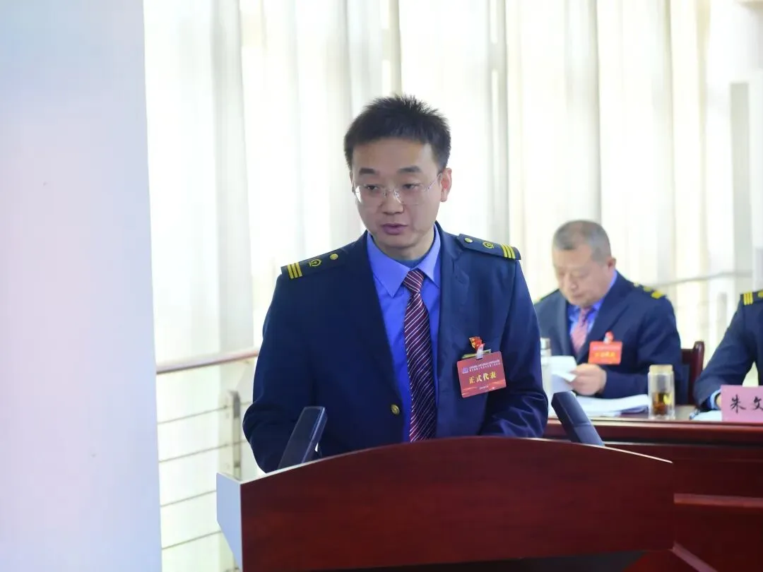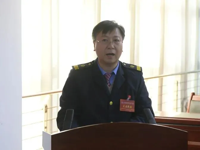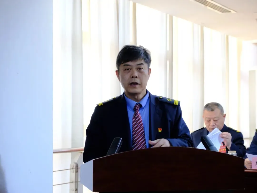 ▲段工会主席张福斌作题为《聚力赋能固根本 奋楫扬帆新征程 在推动太原电务段高质量发展的新征程中展示工会组织新作为》的工会工作报告