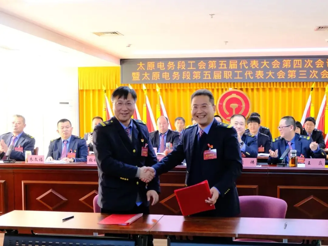 段长张辉东、段工会主席张福斌分别代表行政、工会签订了《太原电务段2026年集体合同》。
