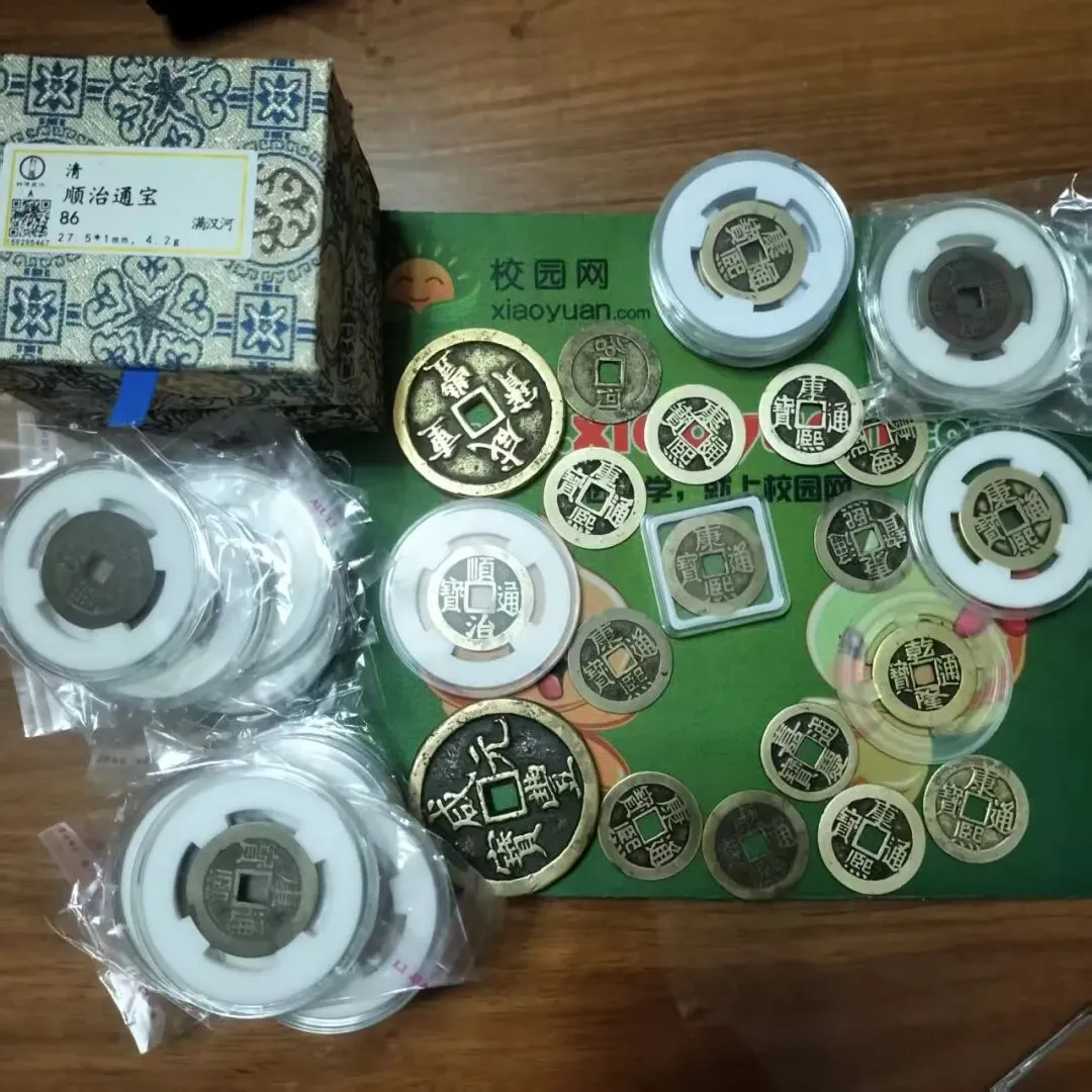 久而久之,我的收藏柜里便攒下了不少古钱币,其中多数是清钱。顺治、康熙、雍正、乾隆、嘉庆……一枚枚清钱虽形制相近,却各有韵味,有的字迹清晰、包浆温润,是精心保存的佳品;有的略有磨损、纹路斑驳,却更添岁月的厚重。每一枚钱币的背后,都藏着一次难忘的市集邂逅,或许是在熙攘的人群中偶然瞥见,或许是与摊主几番交流后欣然入手,或许是几经比对后终于寻得的心仪版别,这些细碎的美好,都让每一枚钱币有了独属于我的故事。