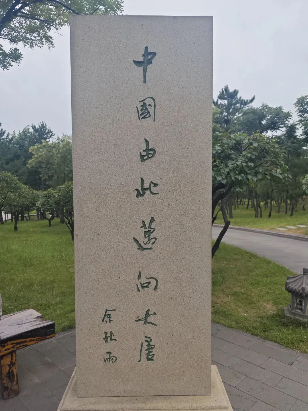 走过雕像,穿越古朴的高耸石经幢,眼前的茵茵绿草开阔平坦,槐树蓊郁葱茏,在少雨缺水的北方,绿草有层次、有节奏、有色差。一池碧水深浅有致,垂柳依依,五彩的游船游荡水面,音乐飘逸,勾勒出一幅恬淡悠远的山水画卷,贯穿一种超越形式的心灵,唤醒深埋心中的本初生命情怀。