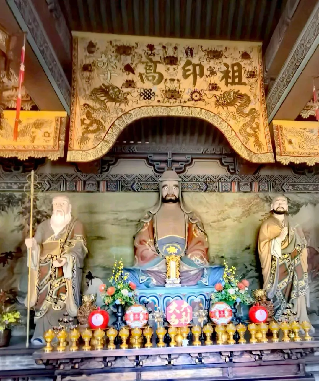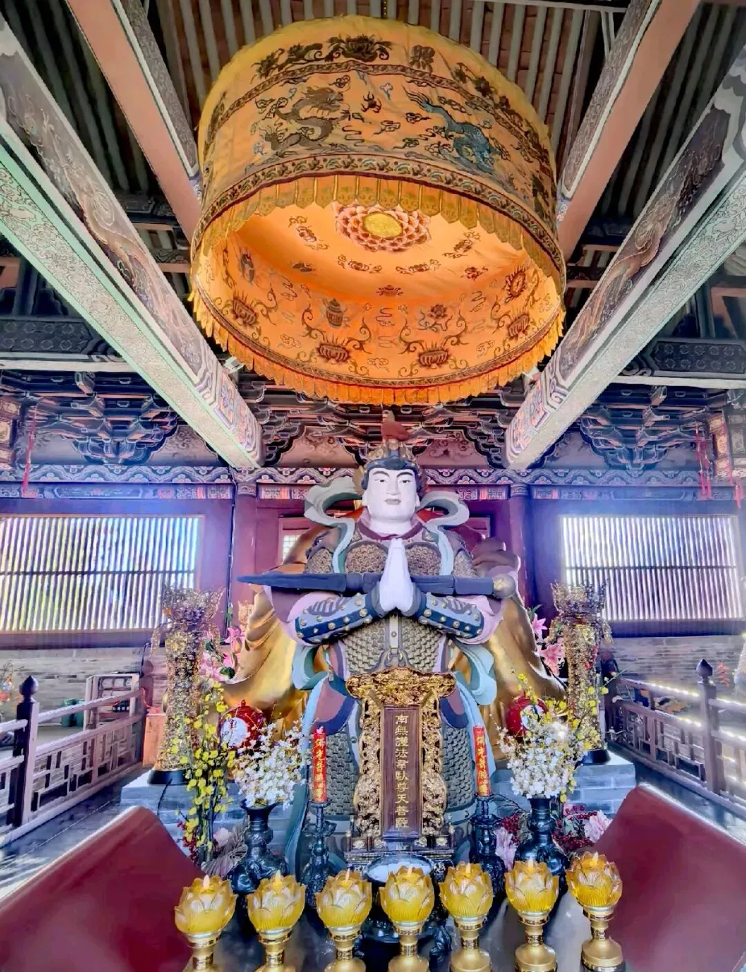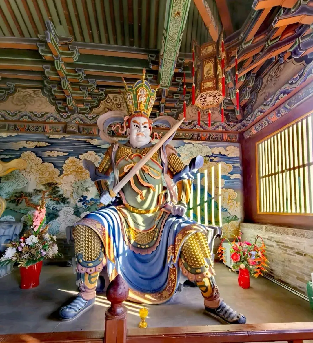 大雄宝殿是法华寺的主殿,殿内供奉着“三身佛”,背光采用悬塑并绘有石绿、深蓝等颜色,立体感极强,山墙绘有水陆壁画,人物众多、形态各异 。