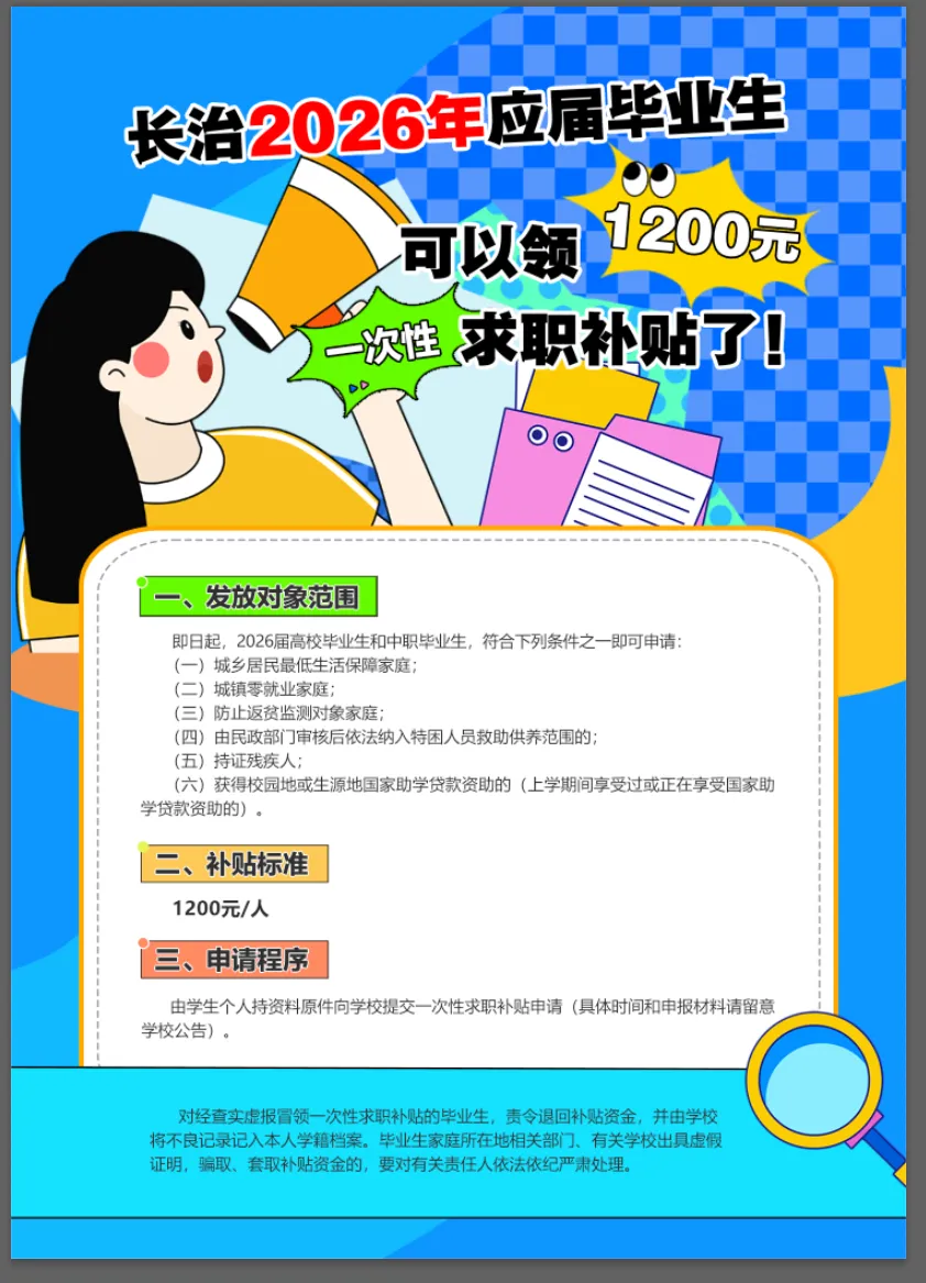 >长治2026年应届毕业生可以领一次性求职补贴了!