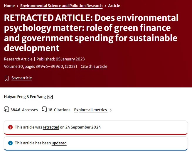 2023年3月,太原理工大学学者在Environmental Science and Pollution Research发表了一篇文章。2024年10月,该篇文章被撤回。论文题目:Does environmental psychology matter: role of green finance and government spending for sustainable development该研究聚焦于占全球GDP超30%、人口超60%的“一带一路”倡议,基于2005年至2020年间57个沿线经济体的数据,采用动态面板数据与系统广义矩估计等前沿计量方法,系统考察了绿色金融、政府支出及人力资本等因素对可持续发展的影响。研究发现,绿色融资、政府支出以及人均GDP的平方项均对降低二氧化碳排放具有显著作用;人力资本水平在减排方面的积极效应与人均GDP相似。相比之下,政府支出对人均GDP、绿色融资与人力资本的正向影响相对有限,但其对碳排放的抑制作用尤为突出。这些结论在“一带一路”的实践中已有印证,例如,中国工商银行对巴基斯坦风电项目的融资支持了当地的绿色转型与减排,而中国作为全球最大的绿色债券发行国之一,其资本正通过“一带一路”项目引导着区域性的低碳投资。基于实证结果,研究为相关国家如何通过政策组合有效降低碳产出提供了具体建议,强调了在推进大型发展项目时,将绿色金融工具嵌入基础设施投资对于实现可持续增长的关键意义。https://link.springer.com/article/10.1007/s11356-022-24969-4