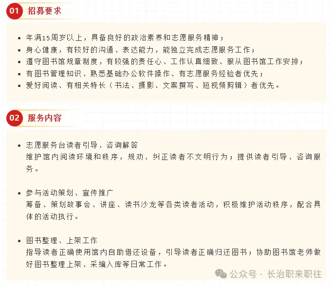 寒假“趣”在哪儿?来长治市图书馆解锁新身份吧!为更好服务读者,同时让广大青少年拥有一份校外学习交流的“宝藏”体验,我们正在寻找爱好阅读、热心公益的你,走进图书馆,在服务与奉献中结识志同道合的伙伴、享受恬静的阅读时光,做知识的传递者与守护者。