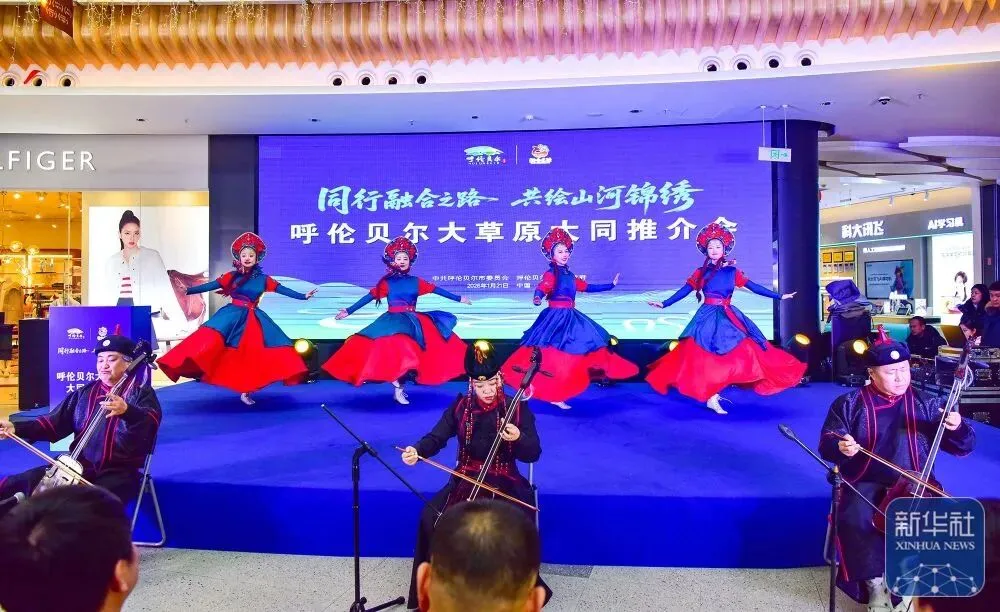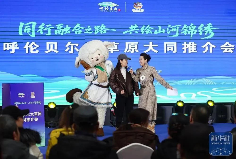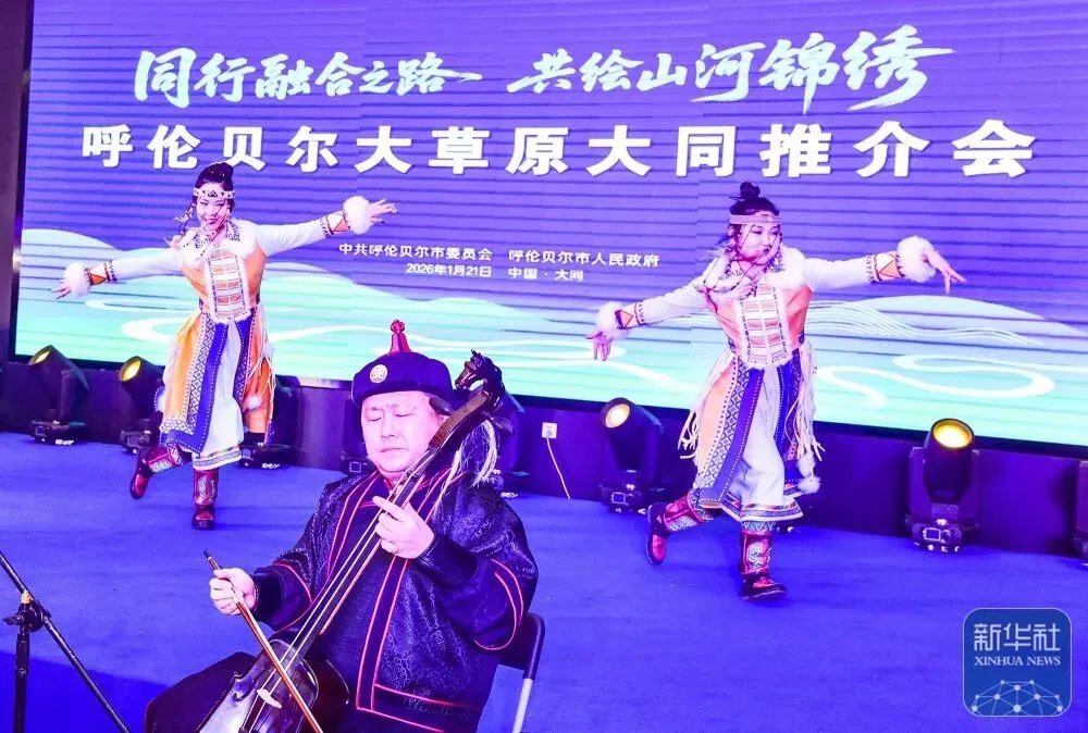 1月21日下午,“同行融合之路 共绘山河锦绣”呼伦贝尔大草原推介会在山西省大同市一大型商超内举行。这是继1月18日呼和浩特首演之后,2026年呼伦贝尔“融合之路”品牌推介的第二站。