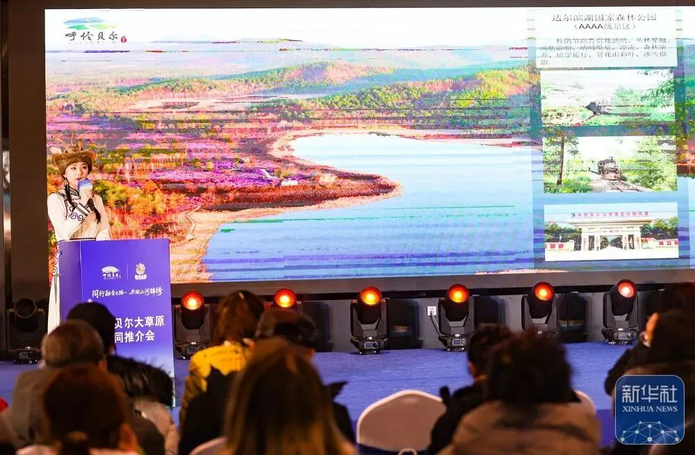 1月21日下午,满洲里市文旅推荐官在推介会上分享当地文旅资源和民俗风情。